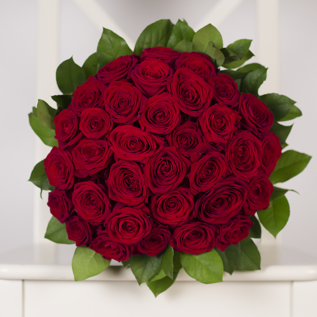 Flowers bring happiness to the people. This Bouquet of 35 red roses will be a beautiful surprise to anyone. For sure this bouquet made by our florists at the Purple Flowers online Flower Shop can transform a regular day into a memorable one. Add your special message to the flowers and we will deliver it as soon as possible. There is no better way of saying „I love you!”, „Happy Birthday!” or „Congratulations!” than with a bouquet of flowers.