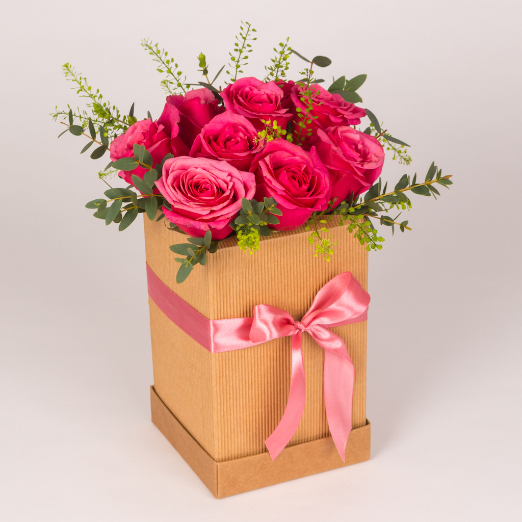 If you want delivery of this box flowers in Bucharest (and surrounding areas) the product will be delivered as in the picture, in a gift bag.
