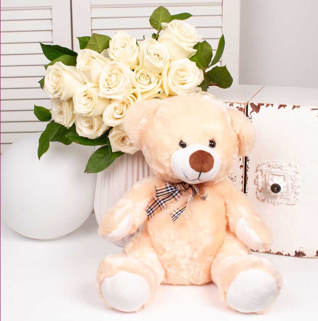 Flowers bring happiness to the people. This Bouquet of white roses will be a beautiful surprise to anyone. For sure this bouquet made by our florists at the Purple Flowers online Flower Shop can transform a regular day into a memorable one. Add your special message to the flowers and we will deliver it as soon as possible. There is no better way of saying „I love you!”, „Happy Birthday!” or „Congratulations!” than with a bouquet of flowers.