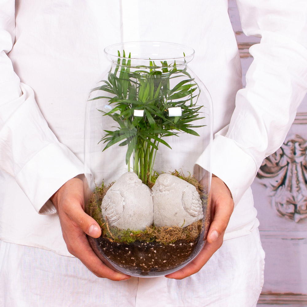 To get the most out of this plant arrangement or terrarium, please add a little water to the right of each plant whenever needed. As terrariums or plant arrangements are made in pots that do not allow excess water to drain away, the recommendation is to add water only when you see the substrate starting to dry out.