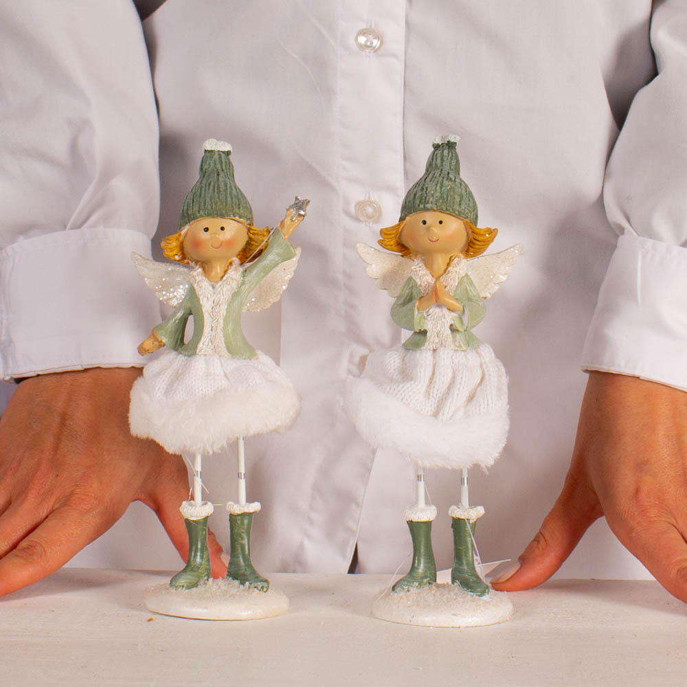 Contains: Angel with star, in skirt, static, with glitter, resin, 9 x 7 x 20 cm, green, white, 2 assortments
