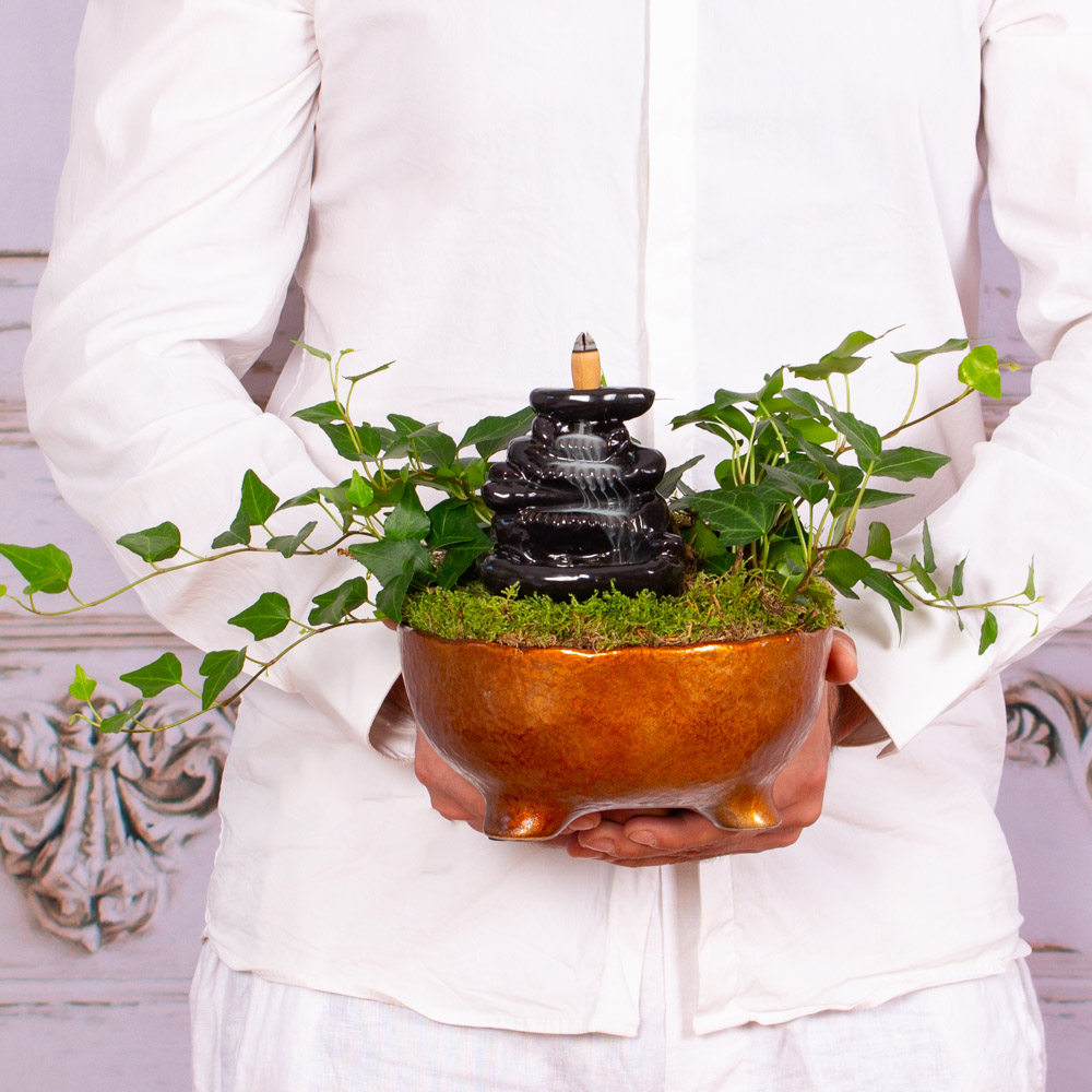 To get the most out of this plant arrangement or terrarium, please add a little water to the right of each plant whenever needed. As terrariums or plant arrangements are made in pots that do not allow excess water to drain away, the recommendation is to add water only when you see the substrate starting to dry out.