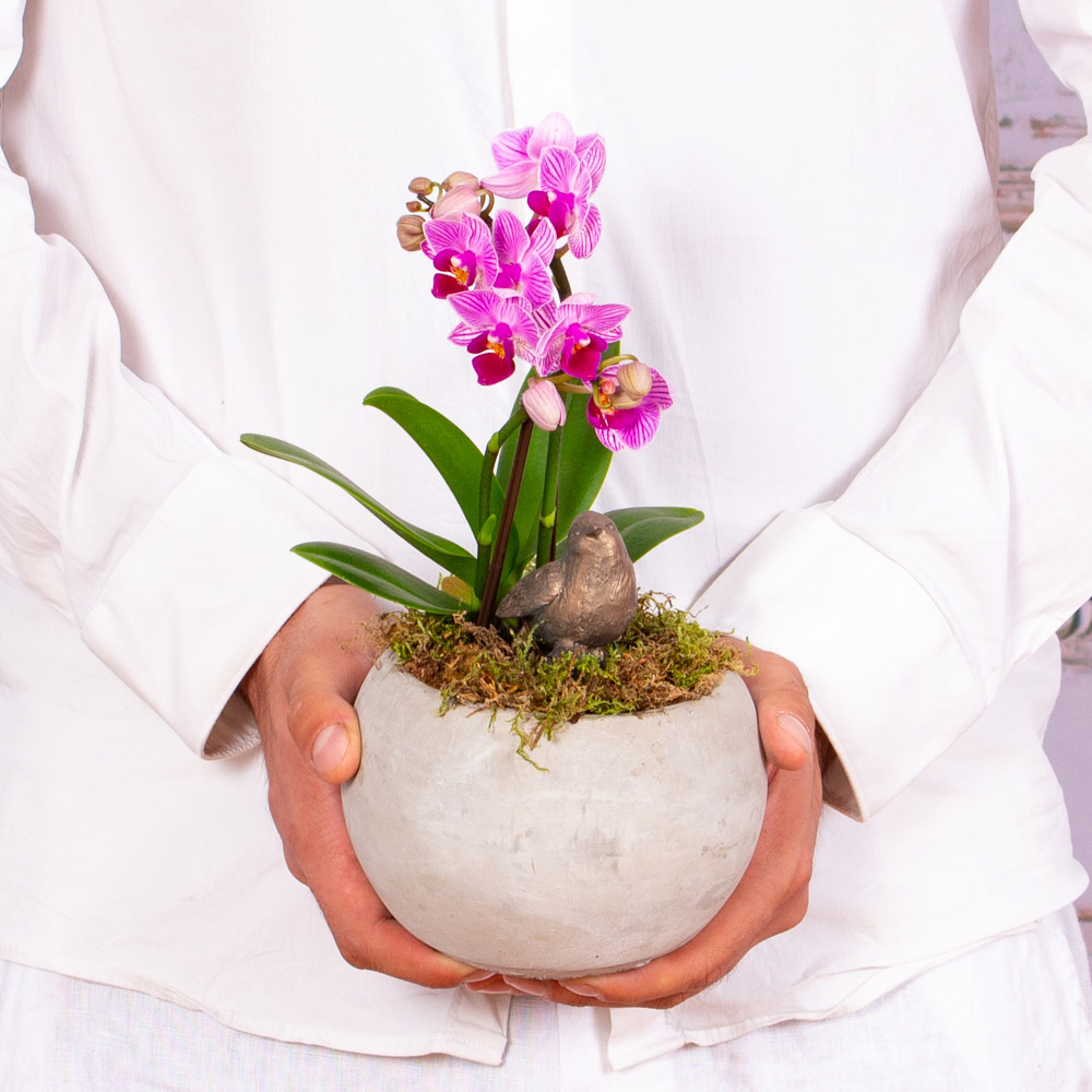 We cherish everything nature has beautiful to offer, so we’ve prepared this special terrarium with phalaenopsis for you or someone dear. Arrangements with green plants and flowering plants last longer and, moreover, purify the air in your home or office. This terrarium is the perfect gift for plant lovers.