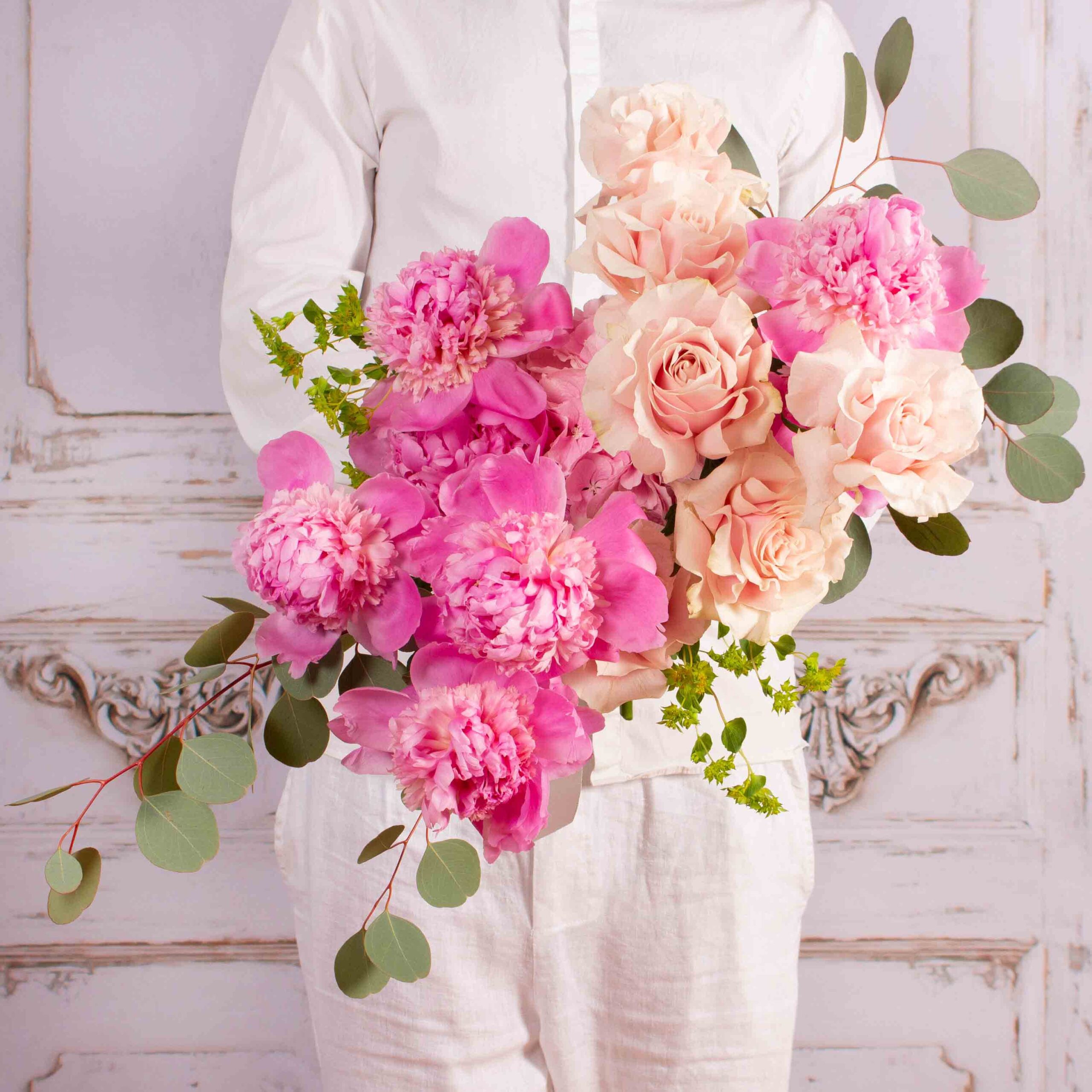 Flowers bring happiness to the people. This Bouquet of roses and peonies will be a beautiful surprise to anyone. For sure this bouquet made by our florists at the Purple Flowers online Flower Shop can transform a regular day into a memorable one. Add your special message to the flowers and we will deliver it as soon as possible. There is no better way of saying „I love you!”, „Happy Birthday!” or „Congratulations!” than with a bouquet of flowers.