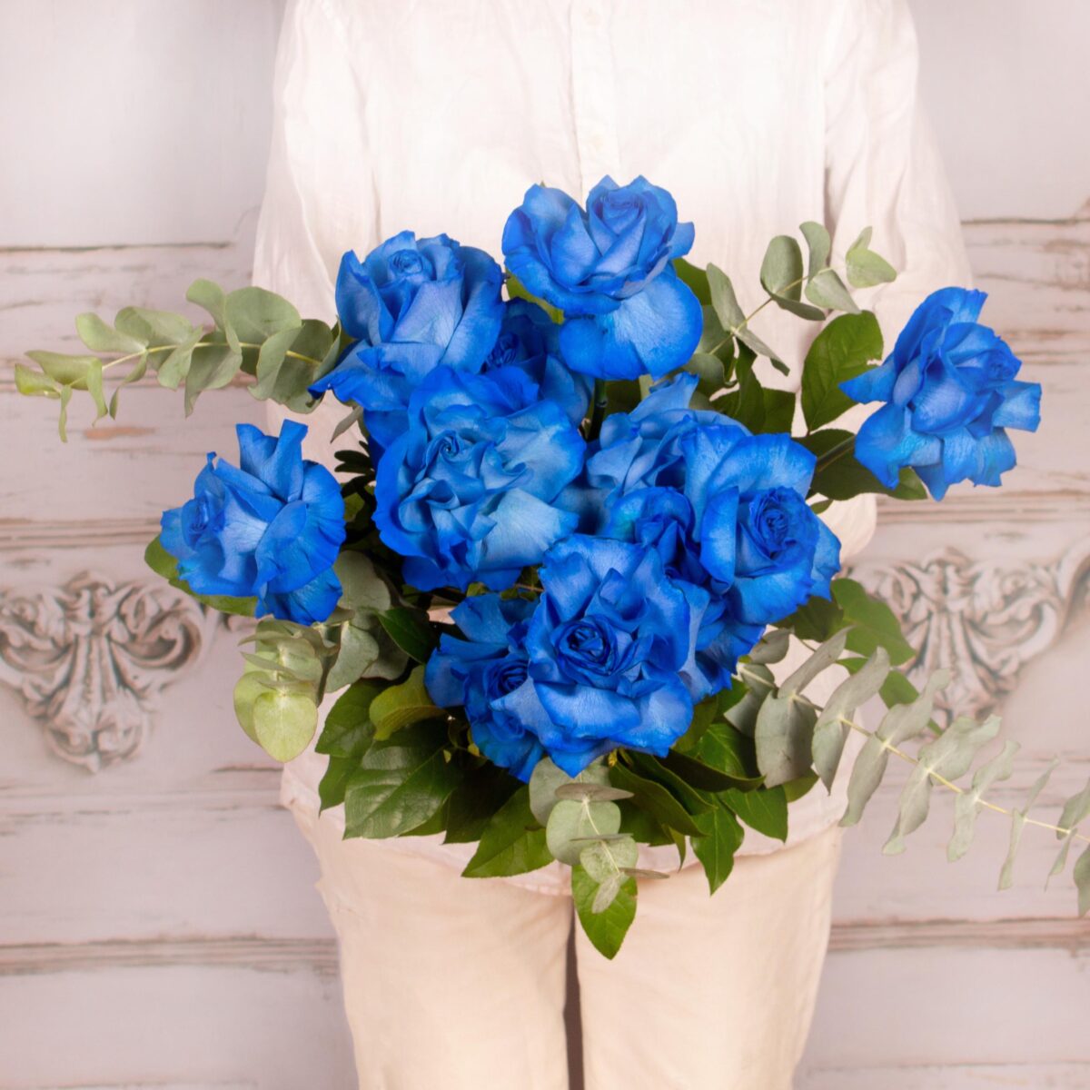 Flowers bring happiness to the people. This Bouquet of 11 blue roses will be a beautiful surprise to anyone. For sure this bouquet made by our florists at the Purple Flowers online Flower Shop can transform a regular day into a memorable one. Add your special message to the flowers and we will deliver it as soon as possible. There is no better way of saying „I love you!”, „Happy Birthday!” or „Congratulations!” than with a bouquet of flowers.