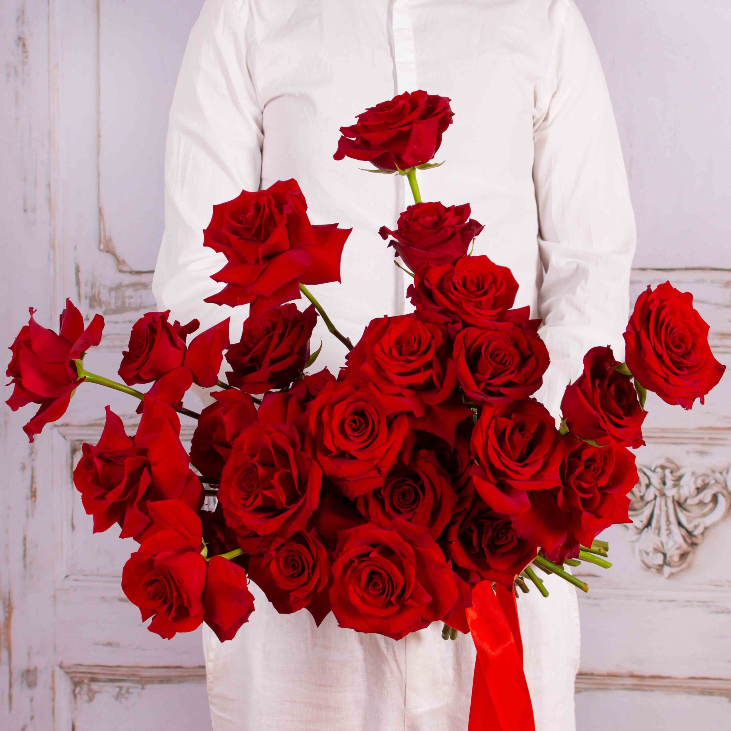 Flowers bring happiness to the people. This Bouquet of red roses will be a beautiful surprise to anyone. For sure this bouquet made by our florists at the Purple Flowers online Flower Shop can transform a regular day into a memorable one. Add your special message to the flowers and we will deliver it as soon as possible. There is no better way of saying „I love you!”, „Happy Birthday!” or „Congratulations!” than with a bouquet of flowers.