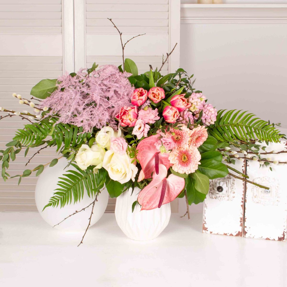 Flowers bring happiness to the people. This Bouquet of tulips, lisianthus and roses will be a beautiful surprise to anyone. For sure this bouquet made by our florists at the Purple Flowers online Flower Shop can transform a regular day into a memorable one. Add your special message to the flowers and we will deliver it as soon as possible. There is no better way of saying „I love you!”, „Happy Birthday!” or „Congratulations!” than with a bouquet of flowers.