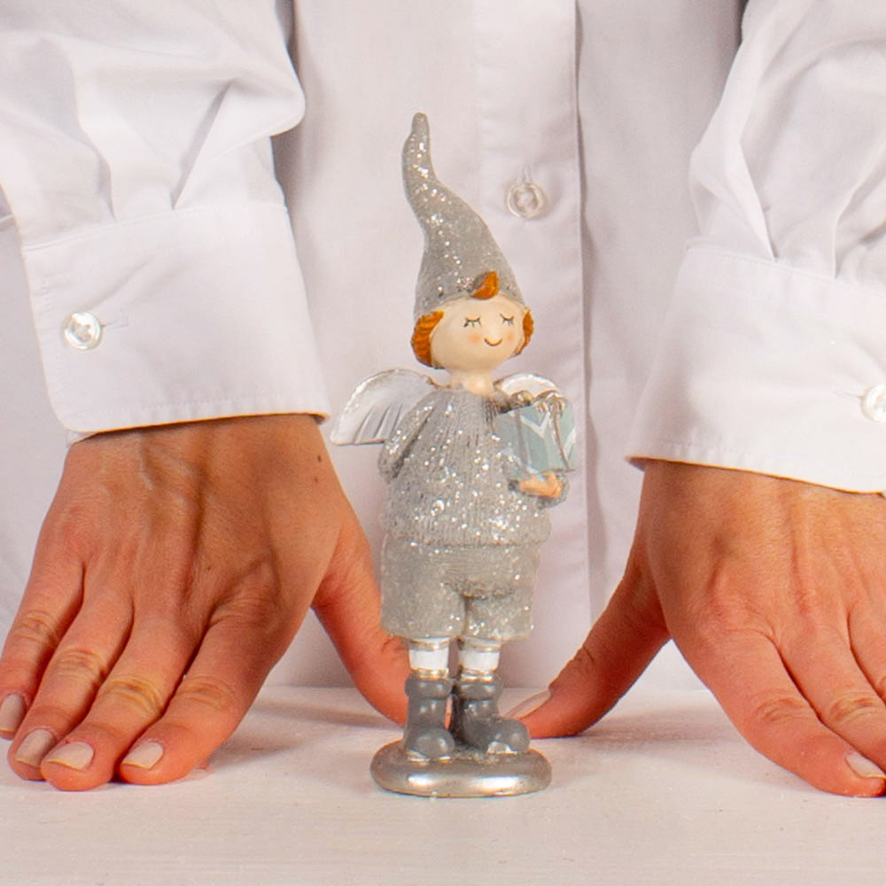 Contains: Boy Angel figurine made of resin 7 x 5 x 18 cm, gray
