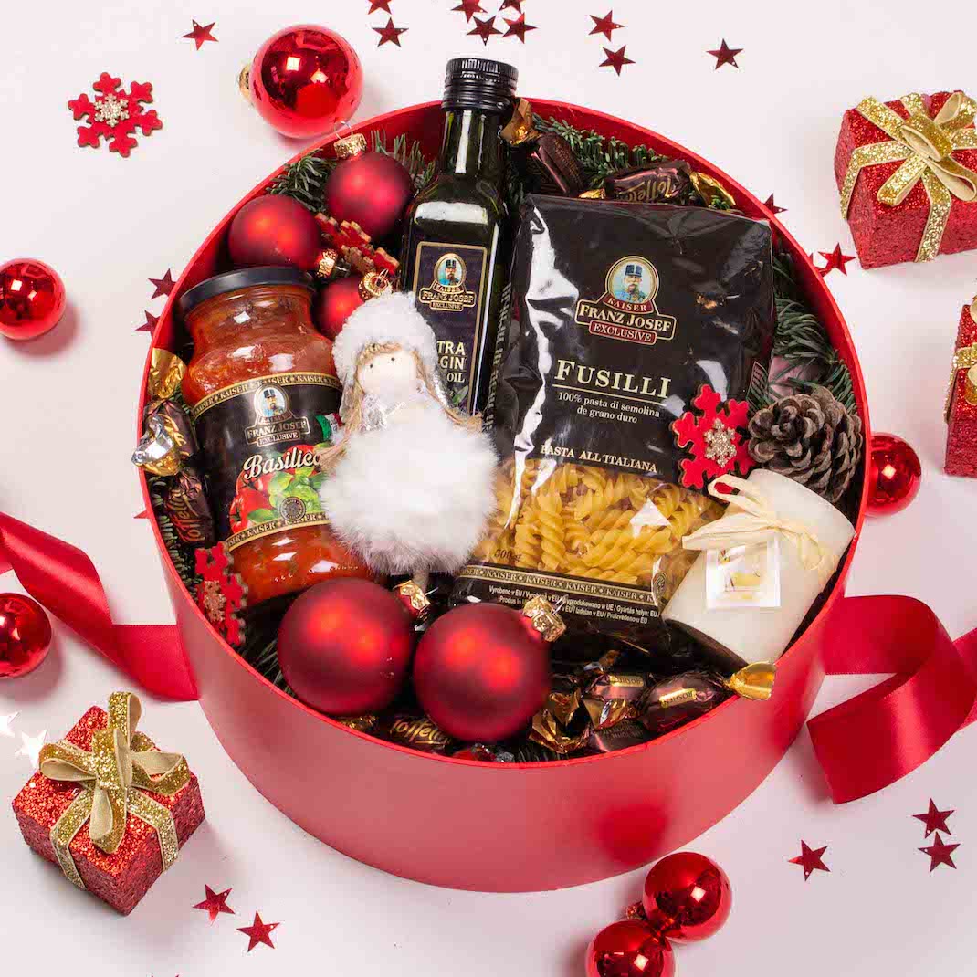 The most special occasions need appropriate gifts. Turn an anniversary into a beautiful memory with this gift basket with sweets and decorations. A gourmet gift basket or a corporate gift basket is a simple and beautiful way to show gratitude, or to congratulate someone. We have chosen quality products, so that our relatives, colleagues or business partners have a beautiful surprise. Romanian traditional artisanal cozonac with cocoa and walnut, or better, the one with Romanian Brandy syrup from Zexe Braserie (finger licking good, we promise!), Panettone Gran Ducale with raisins , Romanian artisanal sponge cake with chocolate and oranges also from Zexe Braserie, delicious pasta and well-chosen sauces, Parmigiano Reggiano , gingerbread, chocolate pralines, appetizing cookies with butter and of course refined wines (Le Versant Cabernet Sauvignon , Wine Crime Rose , Cabernet Suvignon Cricova Vintage Collection, Chardonnay Cricova Vintage Collection) but also Prosecco and Moet champagne. Add a personalized message and we immediately leave to do what we know best, that is to deliver emotions.