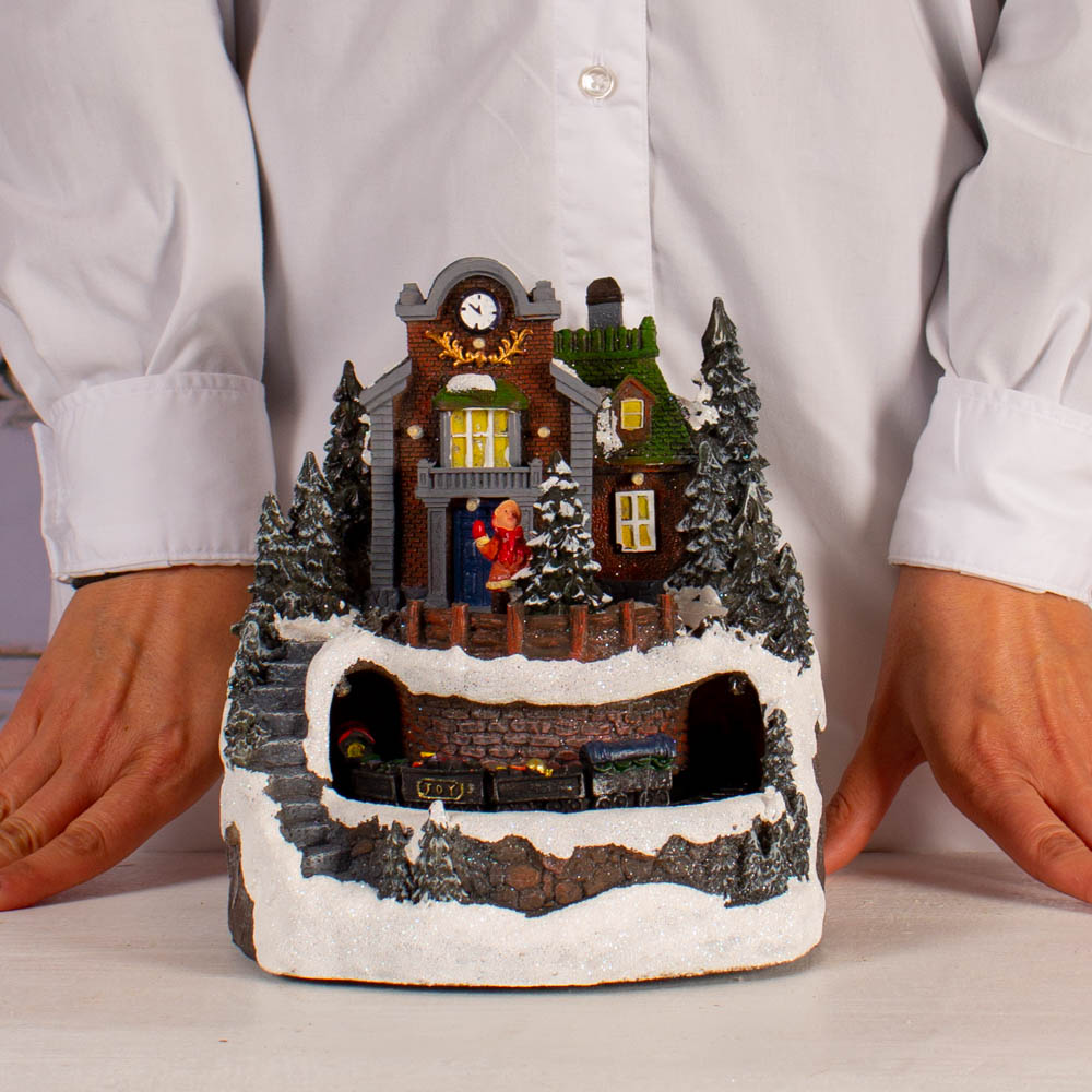 Contains: Rural LED Christmas landscape with train 18.5 x 17.5 x 20.5 cm
