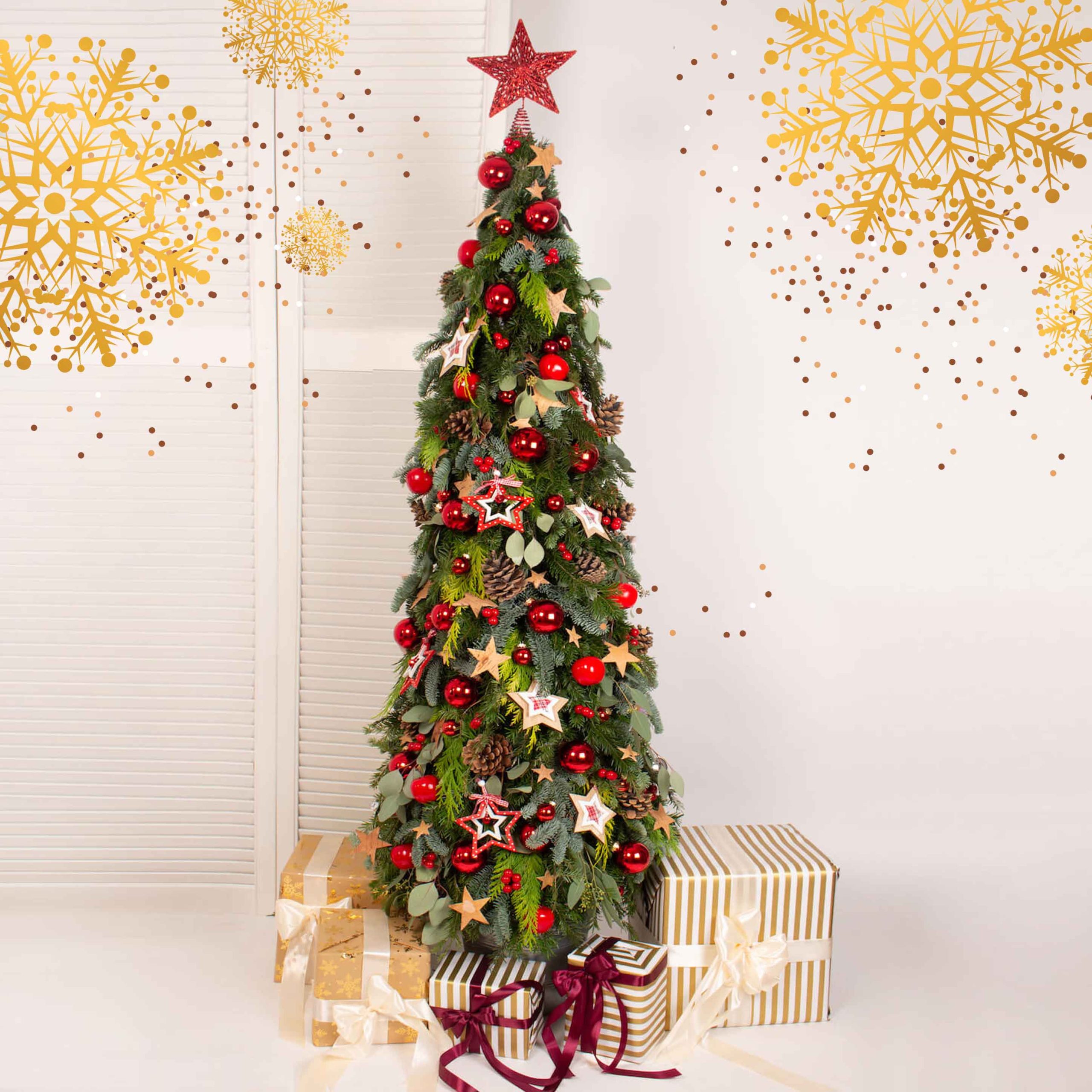 The decorated Christmas tree is the most beautiful symbol of Christmas. The smell of fresh fir, gifts and a rich meal are enough for a magical Christmas. Especially when you are with your loved ones. And for this story to be perfect, we decorated the most beautiful fir trees with lights, wooden decorations, fir cones, red apples and glass globes. We decorated fir trees in different sizes to suit any place you choose to put your Christmas tree. The dimensions in which they are available are: 1m, 1.5m and 2 m.