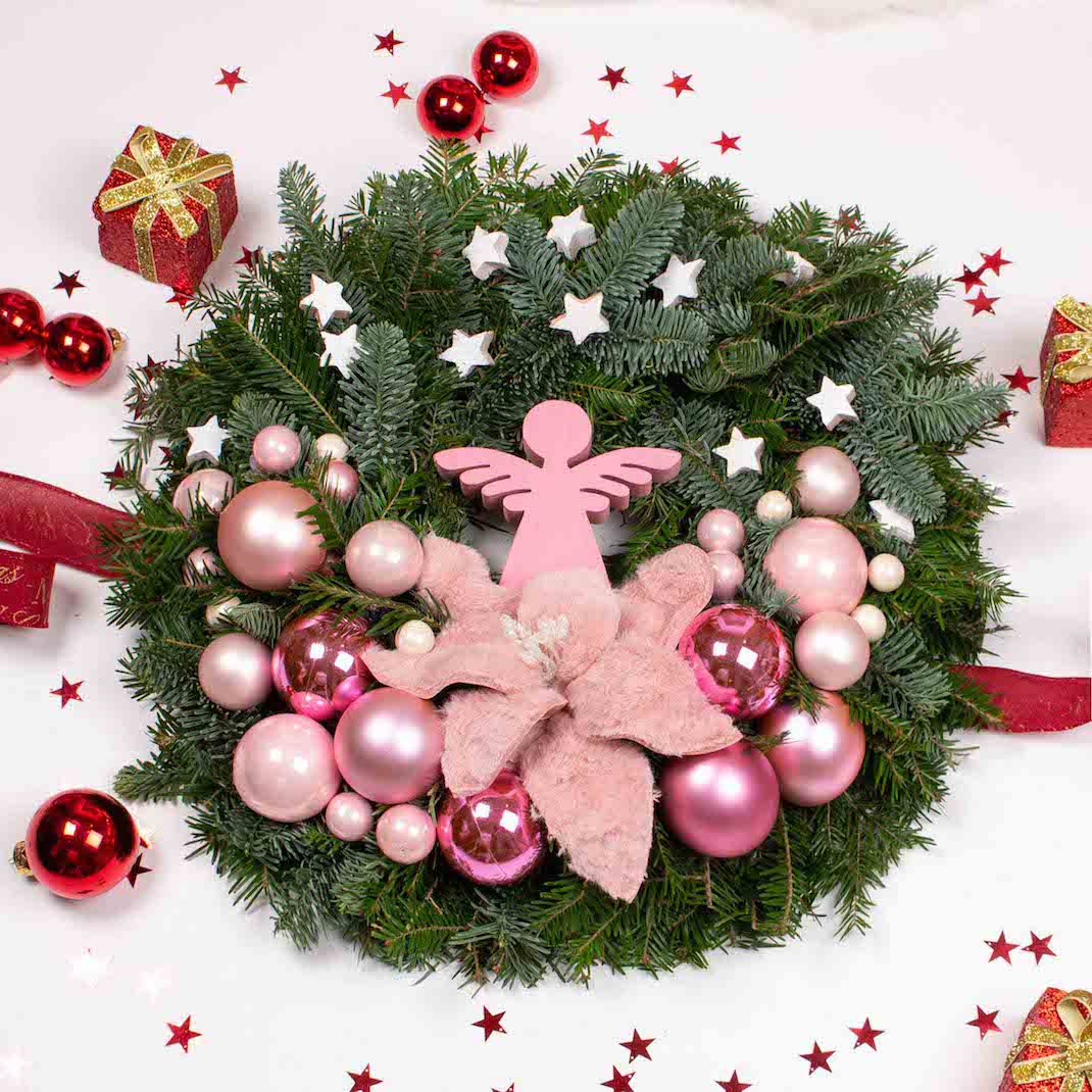 The wreath from the picture (some decorations may be slightly different) in a gift box with a bow