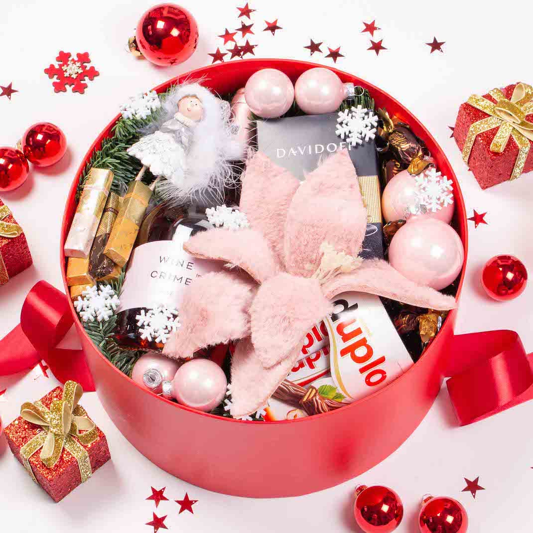 The most special occasions need appropriate gifts. Turn an anniversary into a beautiful memory with this gift basket with Rose wine , sweets and coffee. A gourmet gift basket or a corporate gift basket is a simple and beautiful way to show gratitude, or to congratulate someone. We have chosen quality products, so that our relatives, colleagues or business partners have a beautiful surprise. Romanian traditional artisanal cozonac with cocoa and walnut, or better, the one with Romanian Brandy syrup from Zexe Braserie (finger licking good, we promise!), Panettone Gran Ducale with raisins , Romanian artisanal sponge cake with chocolate and oranges also from Zexe Braserie, delicious pasta and well-chosen sauces, Parmigiano Reggiano , gingerbread, chocolate pralines, appetizing cookies with butter and of course refined wines (Le Versant Cabernet Sauvignon , Wine Crime Rose , Cabernet Suvignon Cricova Vintage Collection, Chardonnay Cricova Vintage Collection) but also Prosecco and Moet champagne. Add a personalized message and we immediately leave to do what we know best, that is to deliver emotions.