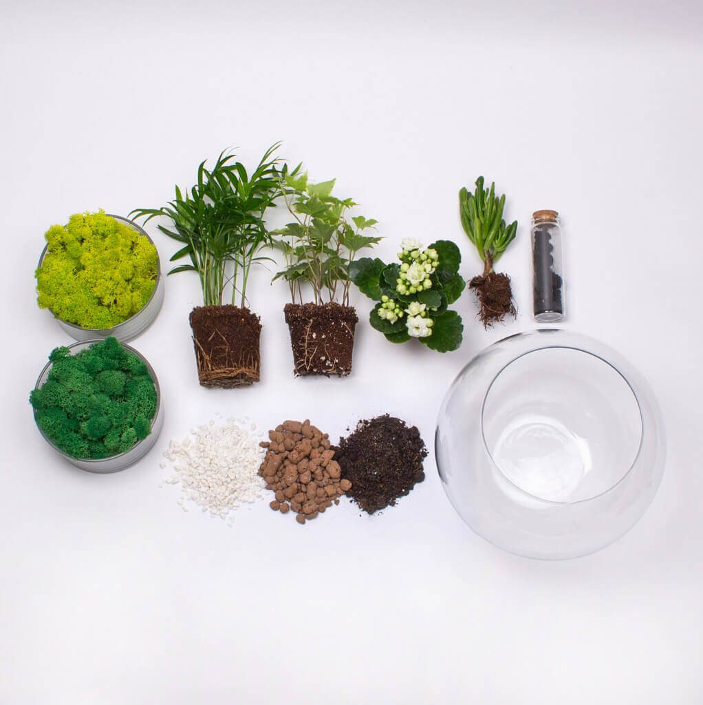 We cherish everything nature has beautiful to offer, so we’ve prepared this special #doityourself kit for you or someone dear. Arrangements with green plants and flowering plants last longer and, moreover, purify the air in your home or office. This terrarium is the perfect gift for plant lovers.