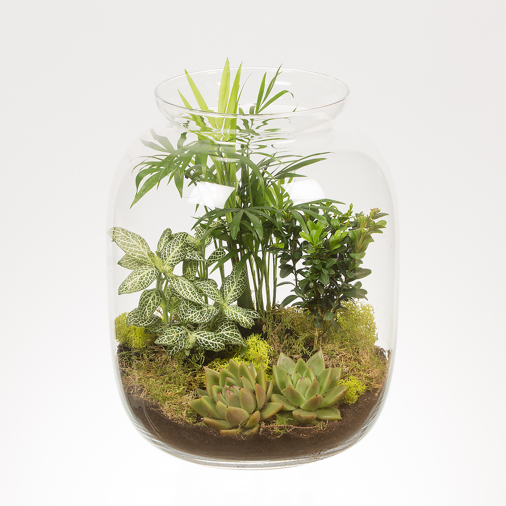 To get the most out of this plant arrangement or terrarium, please add a little water to the right of each plant whenever needed. As terrariums or plant arrangements are made in pots that do not allow excess water to drain away, the recommendation is to add water only when you see the substrate starting to dry out.