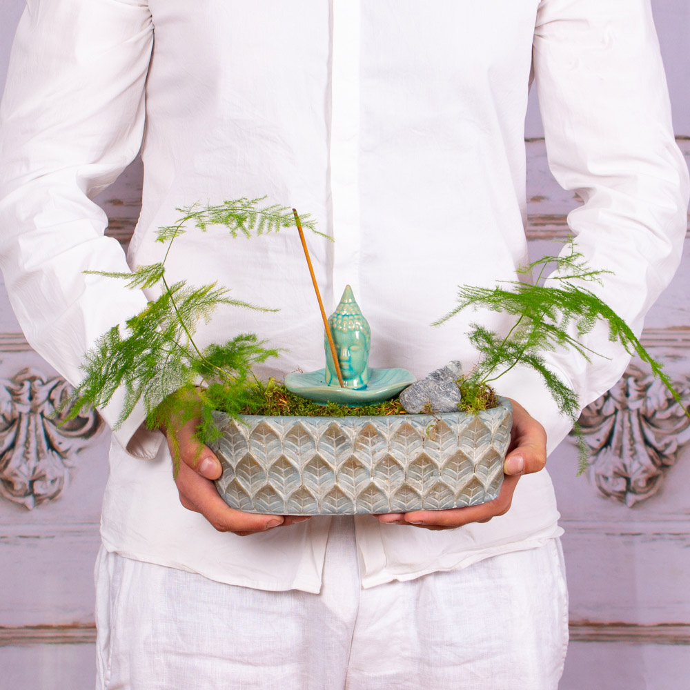 To get the most out of this plant arrangement or terrarium, please add a little water to the right of each plant whenever needed. As terrariums or plant arrangements are made in pots that do not allow excess water to drain away, the recommendation is to add water only when you see the substrate starting to dry out.
