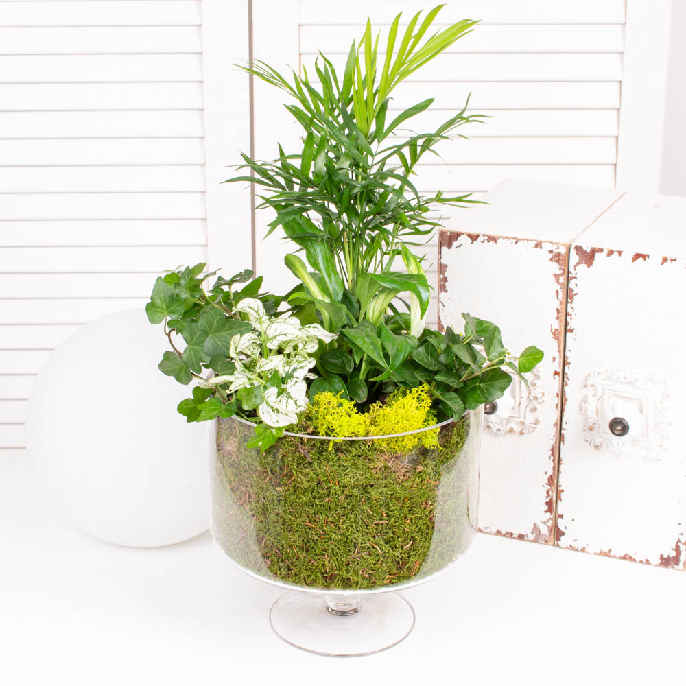 To get the most out of this plant arrangement or terrarium, please add a little water to the right of each plant whenever needed. As terrariums or plant arrangements are made in pots that do not allow excess water to drain away, the recommendation is to add water only when you see the substrate starting to dry out.