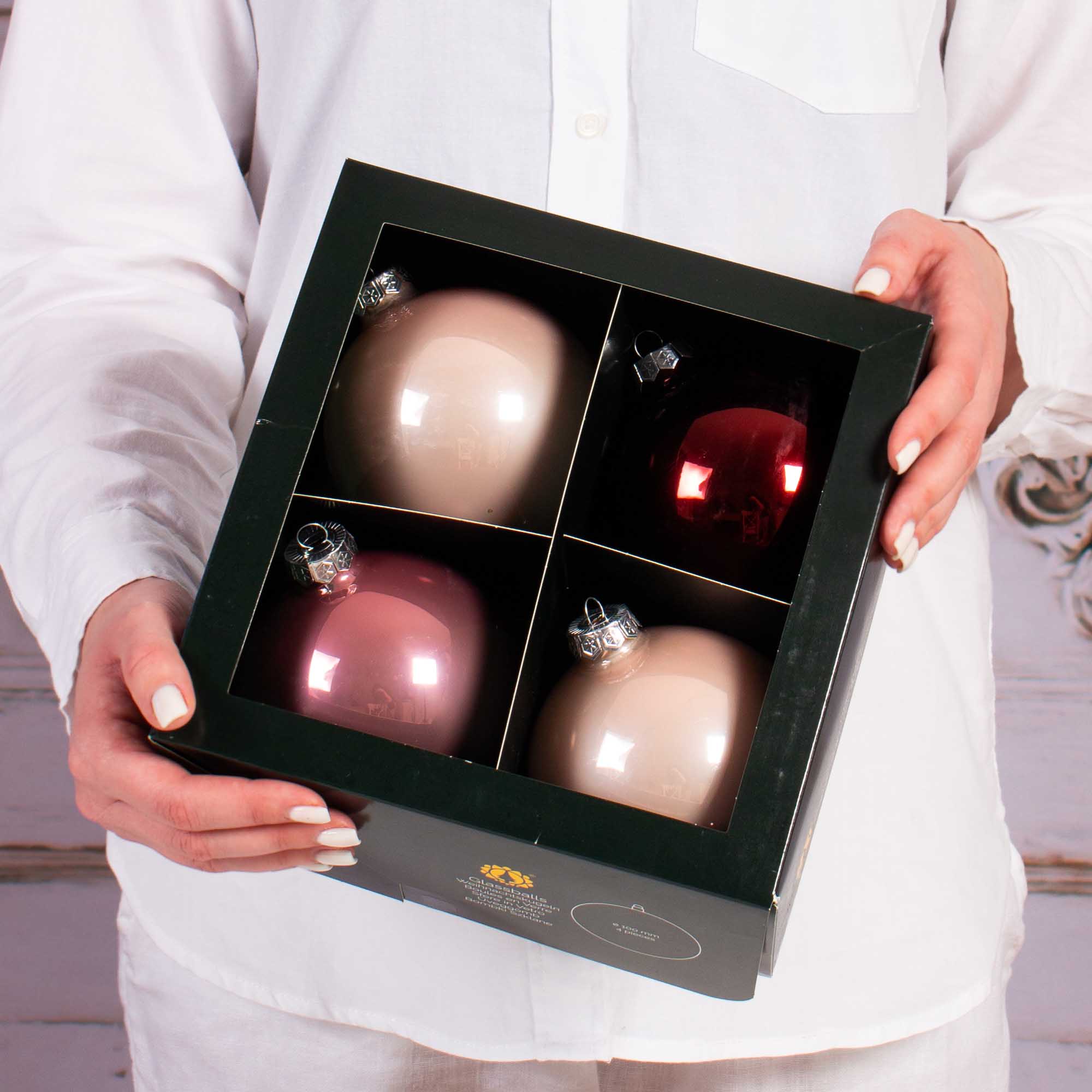 Glass globes 10 cm, pink, set of 4 pcs