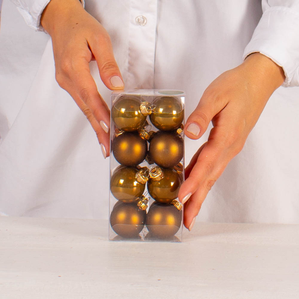 Contains: Set of 16 green glass globes 3.5 cm