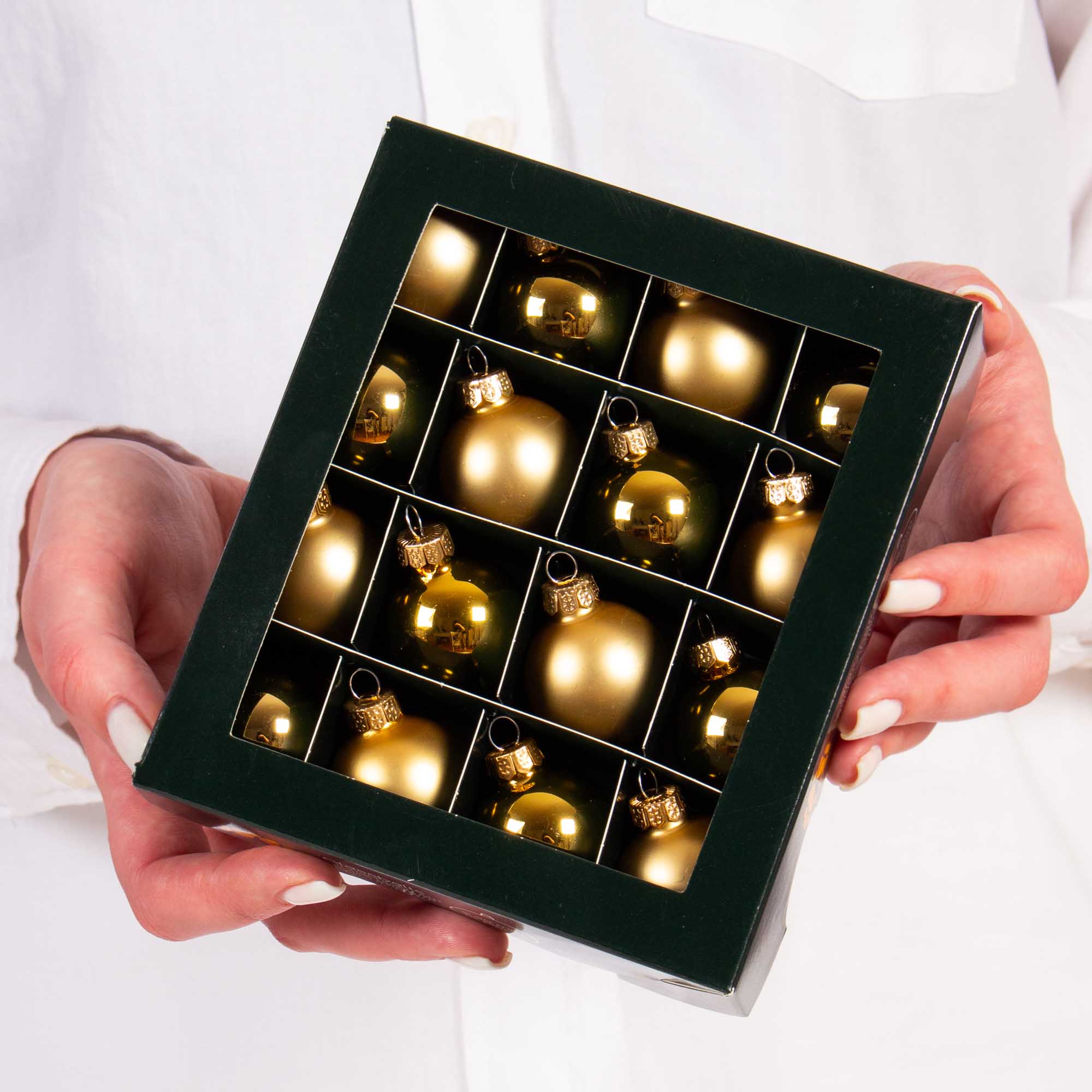 Glass globes 3 cm, glossy and matte gold, set of 16 pcs