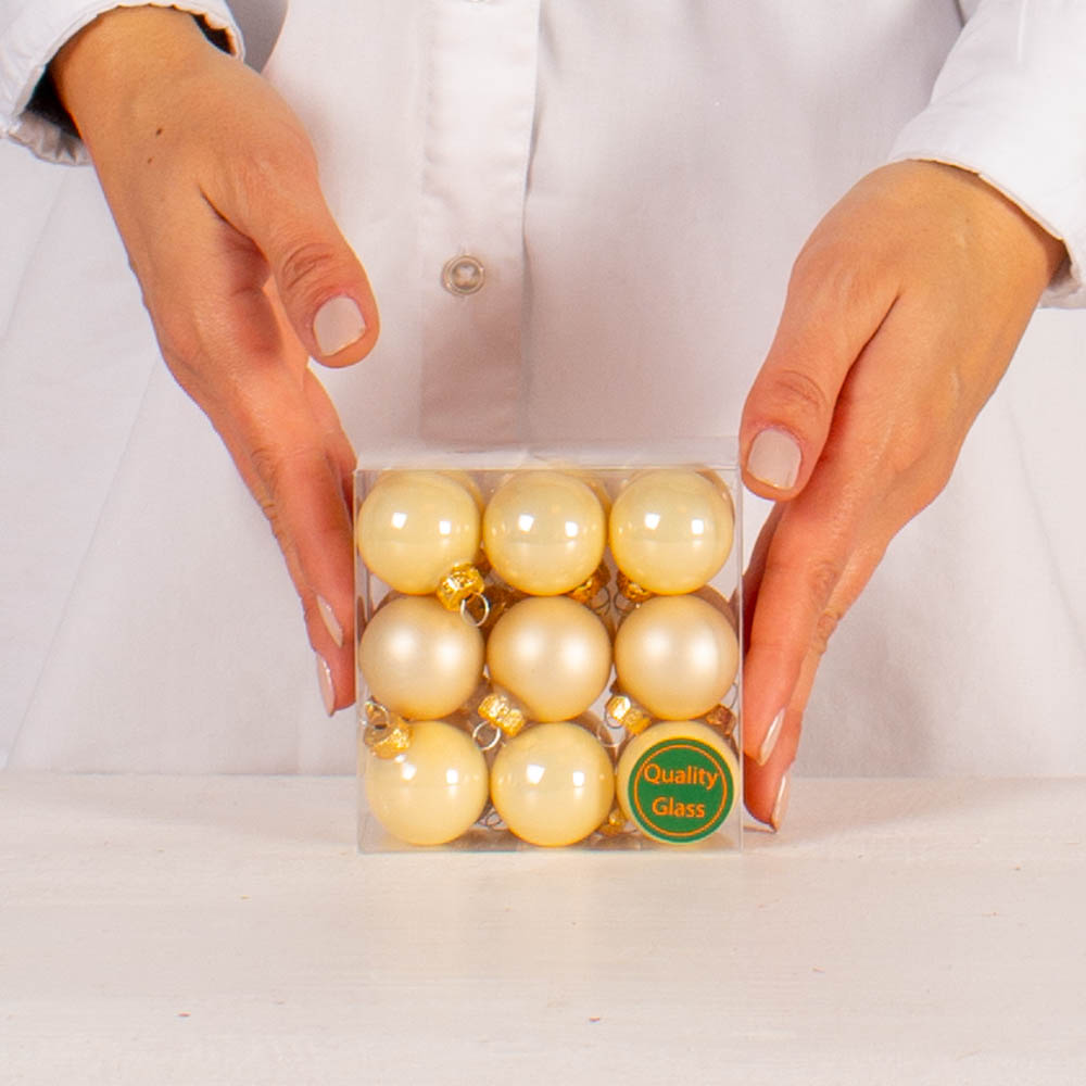 Contains: Set of 18 glossy cream cream glass globes 3 cm