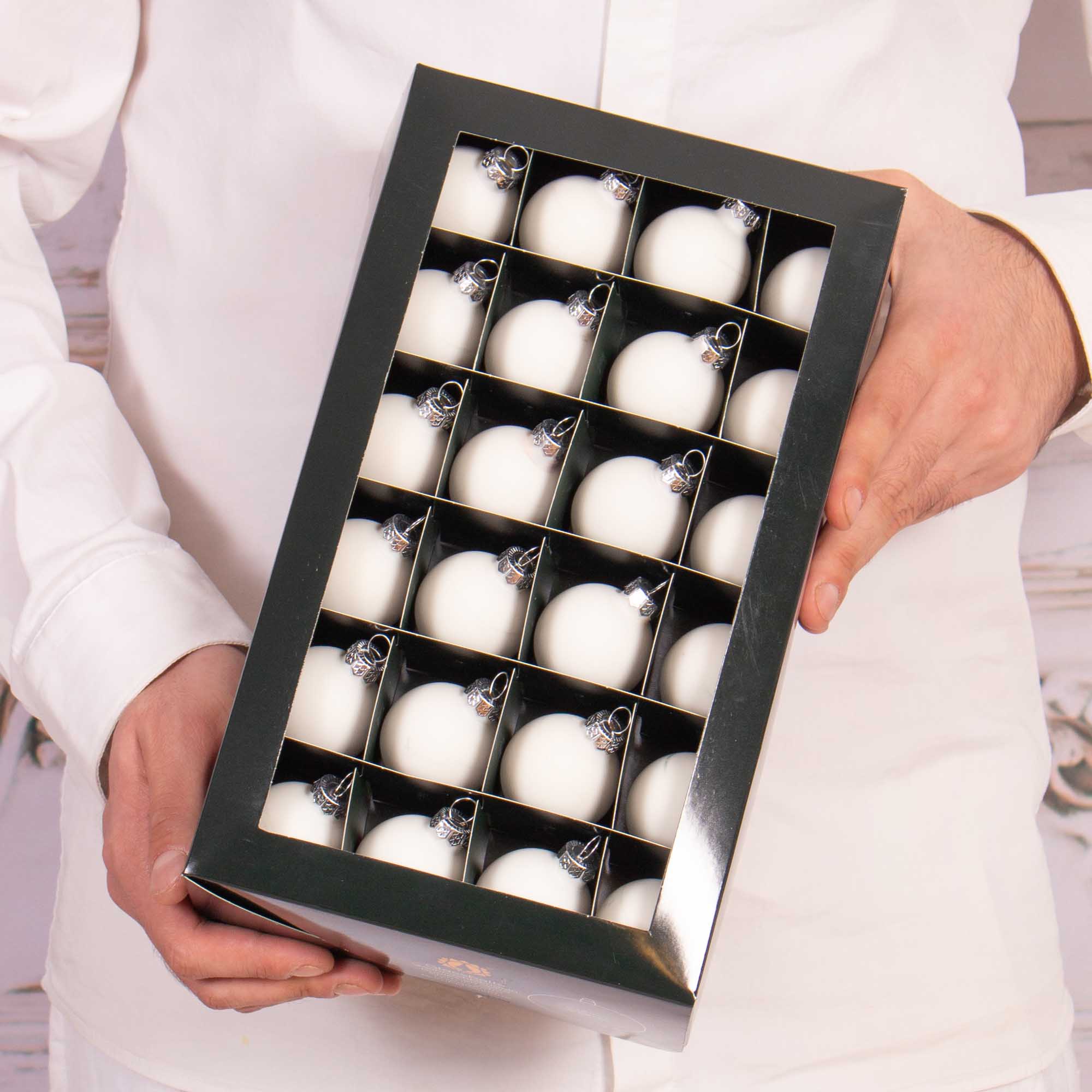 Glass globes 4 cm, matt white, set of 48 pcs