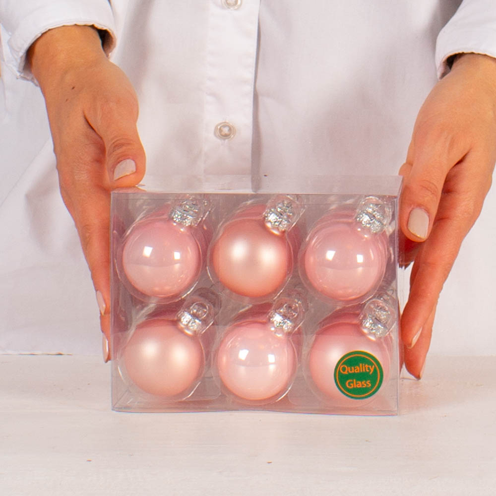 Glass globes 4 cm, matte and glossy pink, set of 18 pcs