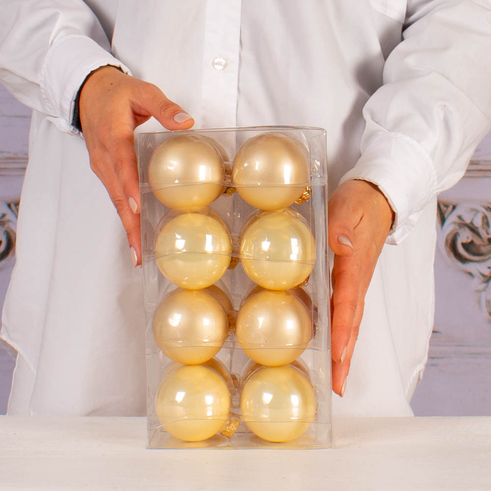 Be the first to review “Glass globes 5.7 cm, golden cream, set of 16 pcs”