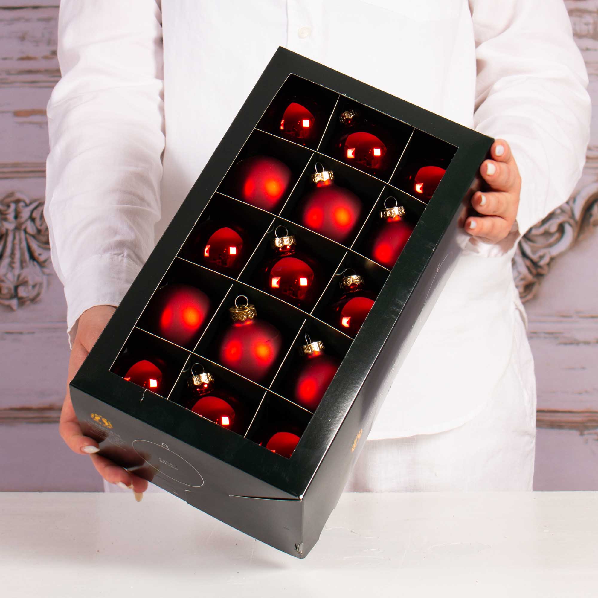 Be the first to review “Glass globes 5.7 cm, matte and glossy red, set of 30 pcs”