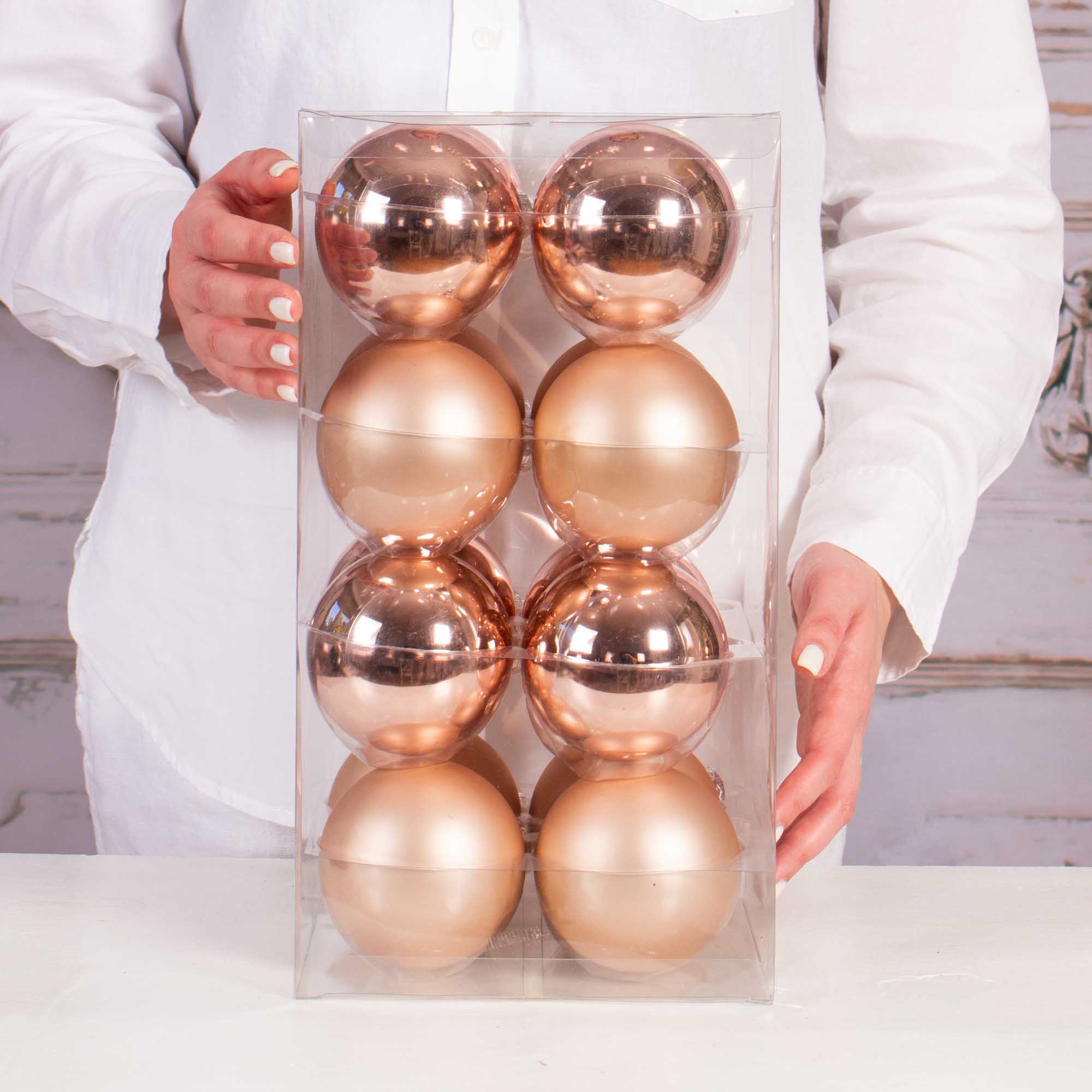 Glass globes 8 cm, matte and glossy pink, set of 16 pcs