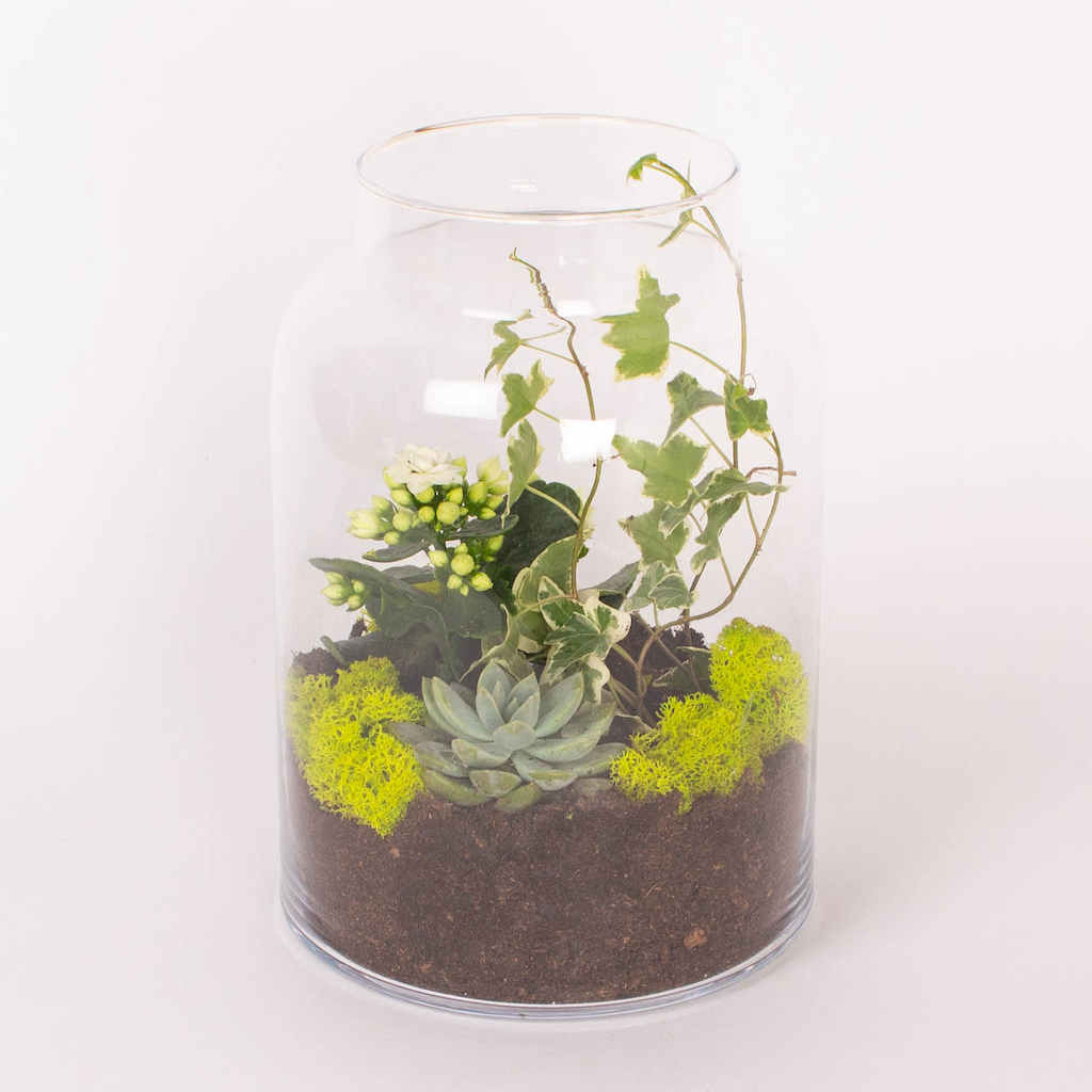 We cherish everything nature has beautiful to offer, so we’ve prepared this special terrarium for you or someone dear. Arrangements with green plants and flowering plants last longer and, moreover, purify the air in your home or office. This terrarium is the perfect gift for plant lovers.