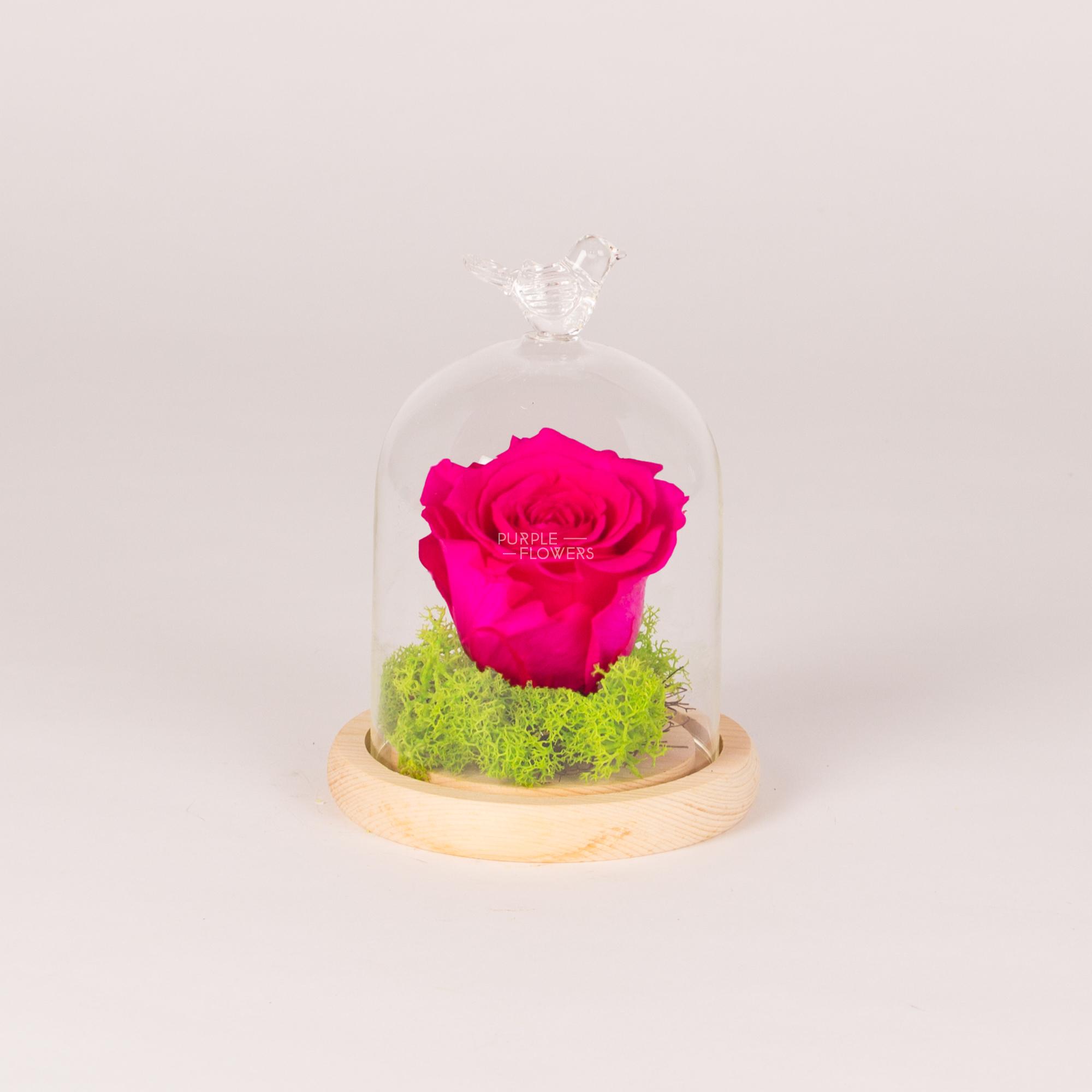 Be the first to review “Preserved pink rose in glass bell with wooden base”