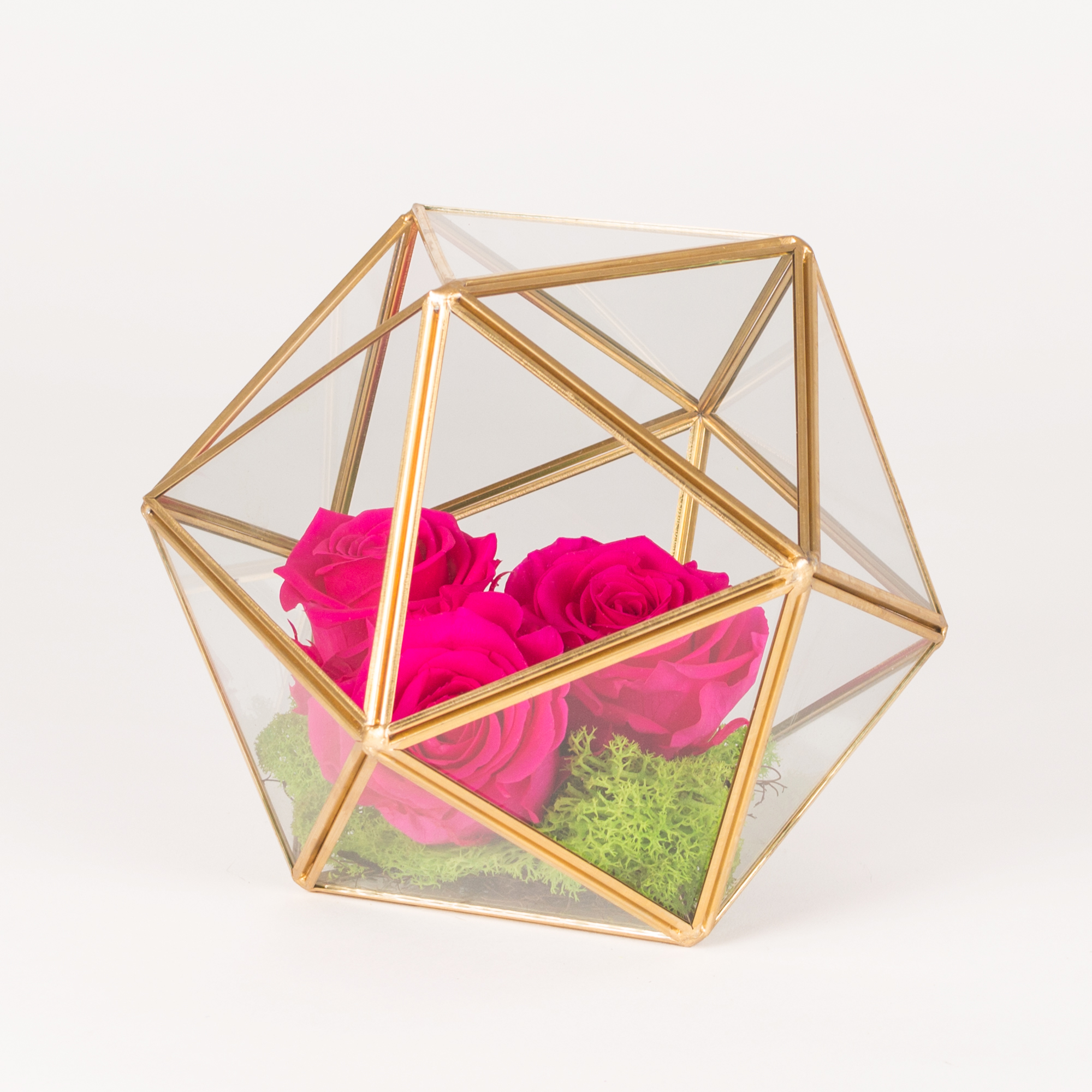 Preserved pink roses in sphere shaped terrarium