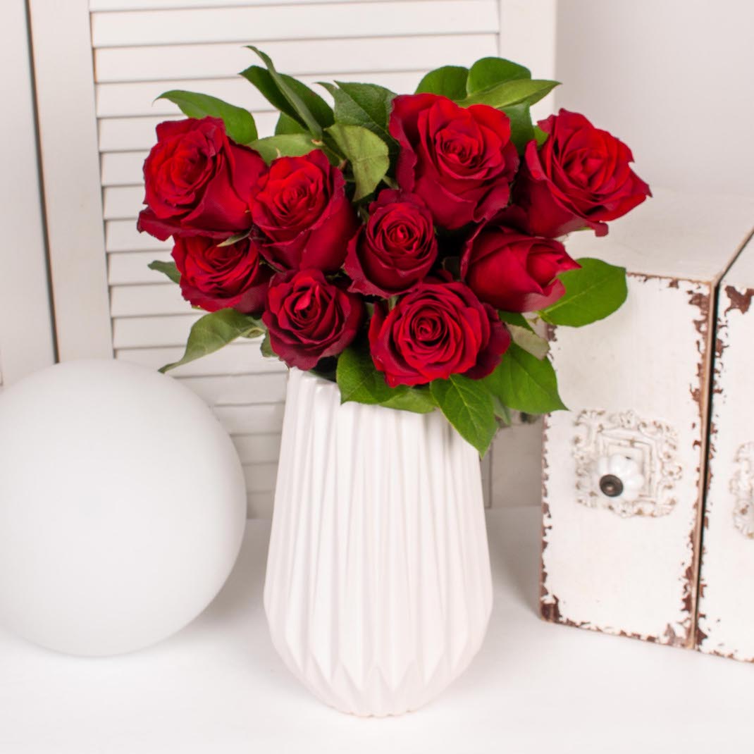 Flowers bring happiness to the people. This Bouquet of red roses will be a beautiful surprise to anyone. For sure this bouquet made by our florists at the Purple Flowers online Flower Shop can transform a regular day into a memorable one. Add your special message to the flowers and we will deliver it as soon as possible. There is no better way of saying „I love you!”, „Happy Birthday!” or „Congratulations!” than with a bouquet of flowers.