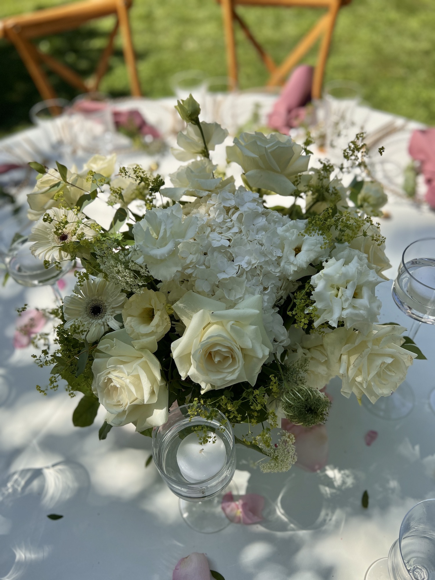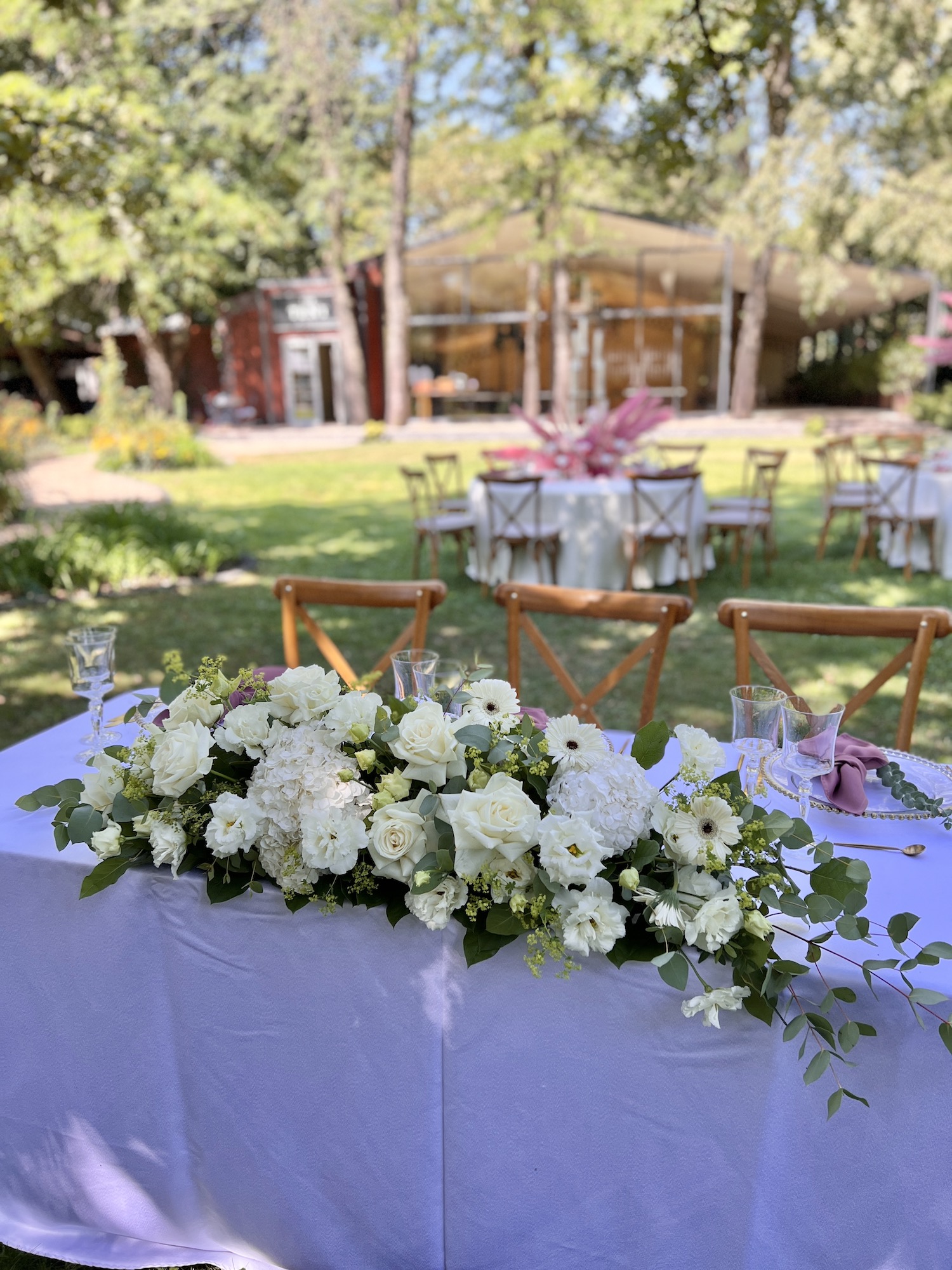 Weddings with white flowers are for brides who wish for an elegant wedding. But not really stiff, a wedding is still a celebration of love. The white and green flowers highlights the desire to spend a beautiful evening surrounded by an amazing setting.