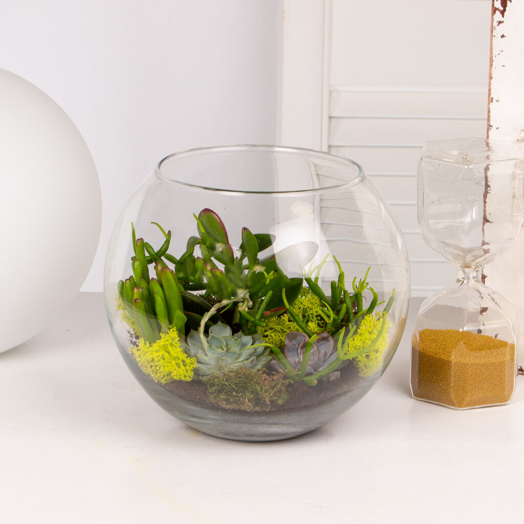 We cherish everything nature has beautiful to offer, so we’ve prepared this special terrarium with succulents for you or someone dear. Arrangements with green plants and flowering plants last longer and, moreover, purify the air in your home or office. This terrarium is the perfect gift for plant lovers.