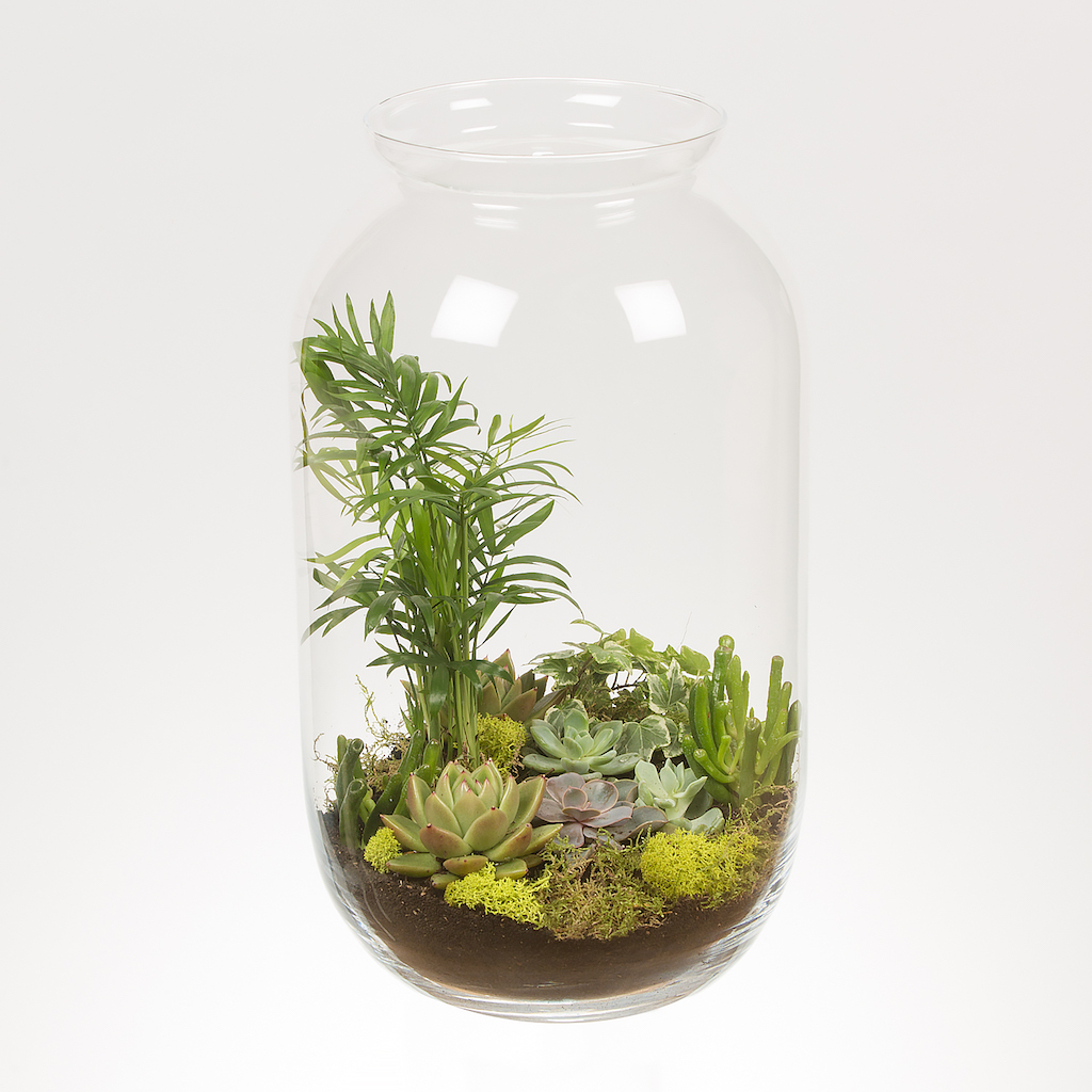 To get the most out of this plant arrangement or terrarium, please add a little water to the right of each plant whenever needed. As terrariums or plant arrangements are made in pots that do not allow excess water to drain away, the recommendation is to add water only when you see the substrate starting to dry out.