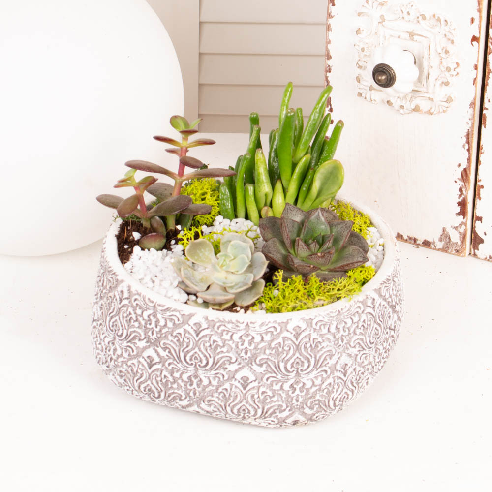 To get the most out of this plant arrangement or terrarium, please add a little water to the right of each plant whenever needed. As terrariums or plant arrangements are made in pots that do not allow excess water to drain away, the recommendation is to add water only when you see the substrate starting to dry out.