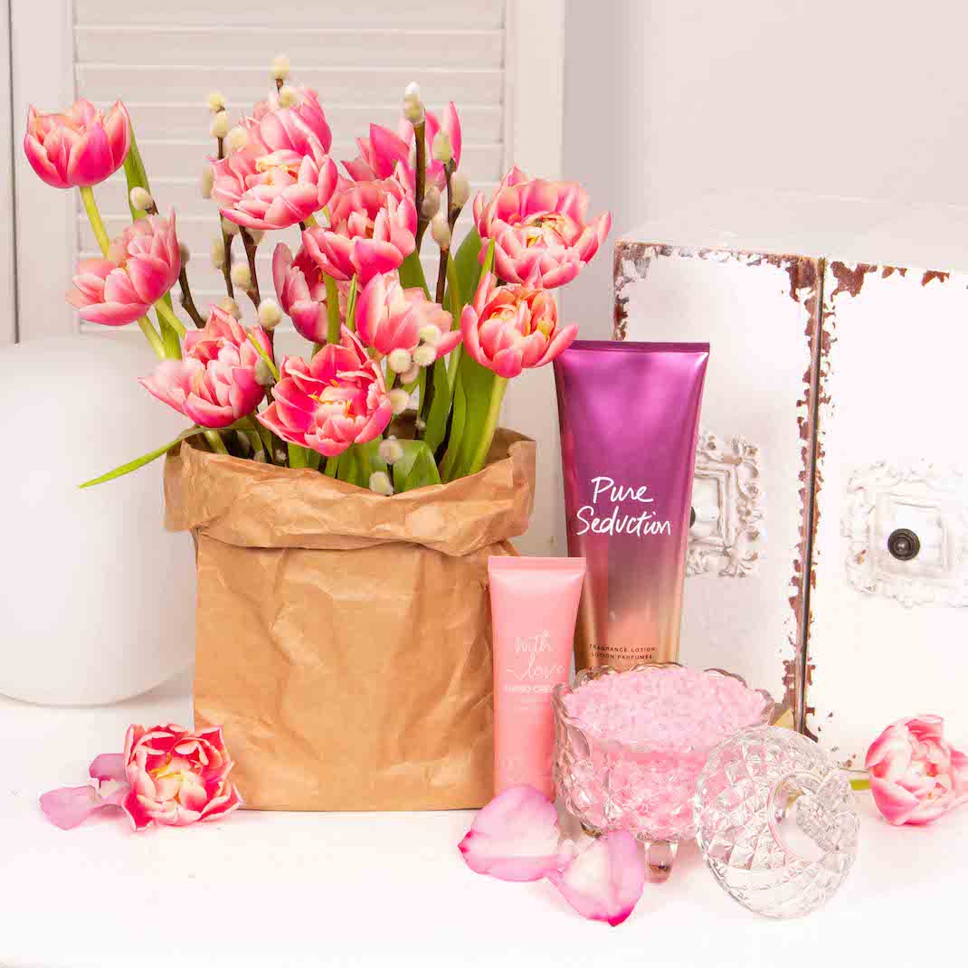 The most special occasions need special gifts. Order this gift with tulips, body lotion, hand cream, bath salt and turn an ordinary day into a beautiful memory. Designed specifically for women, whether you want to give it to your mother, girlfriend, colleagues, or other women you know, they will surely appreciate that you’ve thought of them.