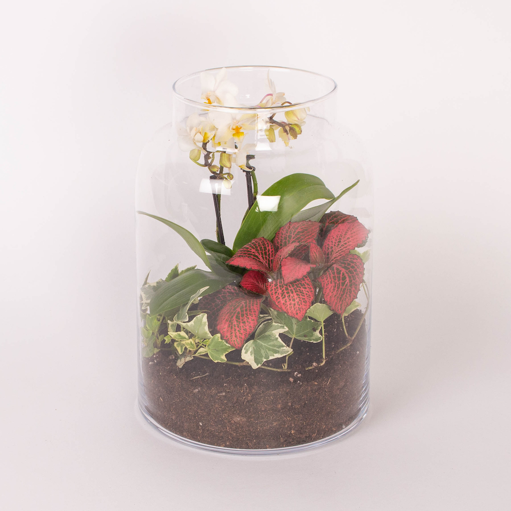 To get the most out of this plant arrangement or terrarium, please add a little water to the right of each plant whenever needed. As terrariums or plant arrangements are made in pots that do not allow excess water to drain away, the recommendation is to add water only when you see the substrate starting to dry out.