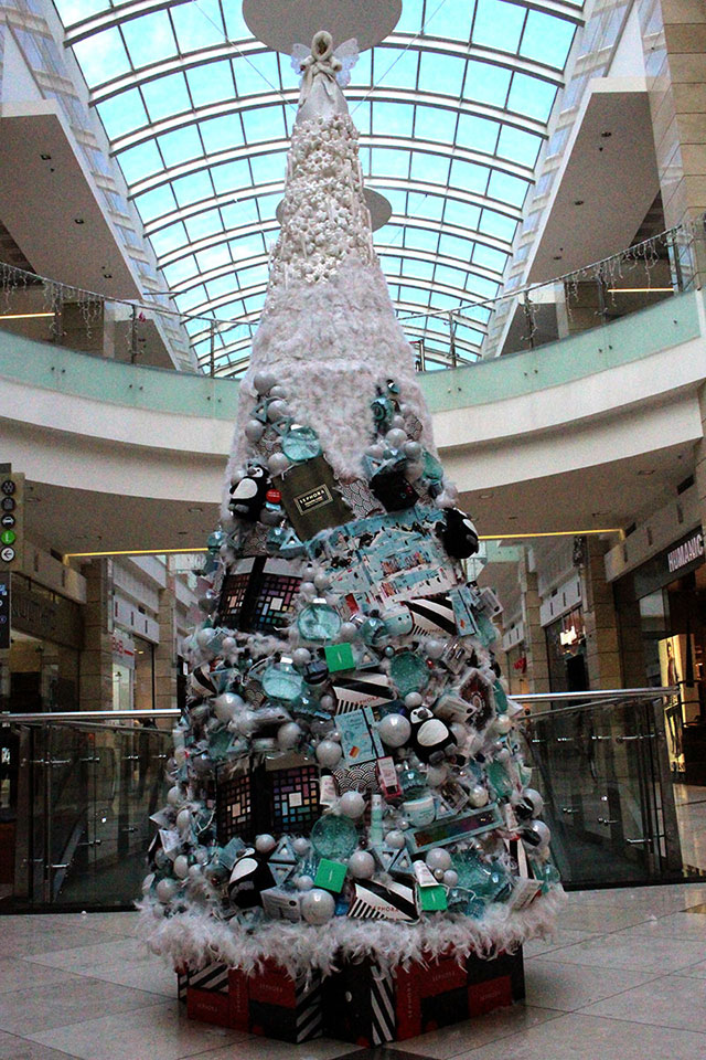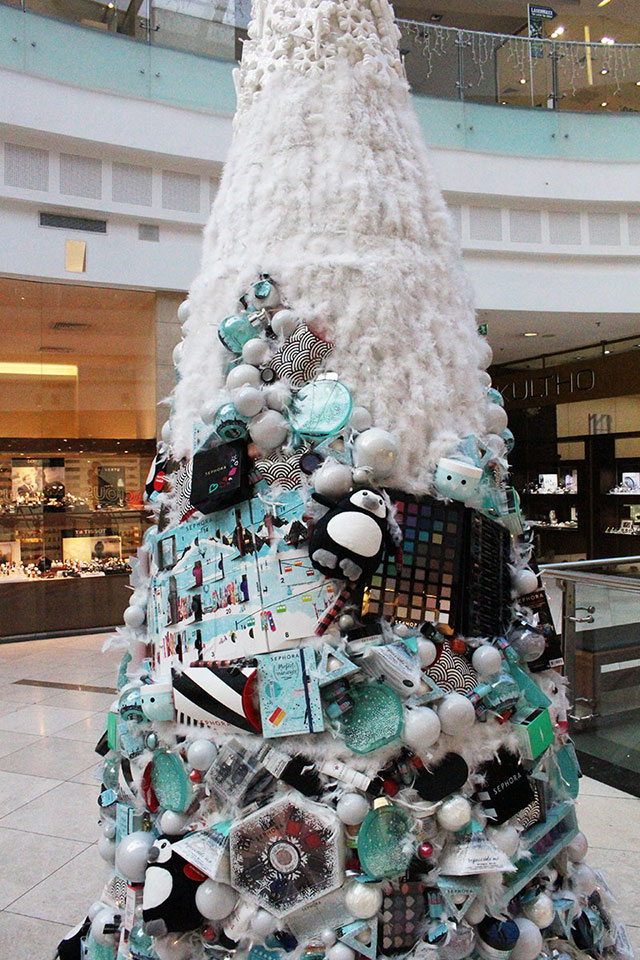 The third story starts in a very special world. I don’t use many cosmetic products, I don’t have the time and the patience for this, but I’ve always been fascinated by… their packages. Especially when it comes to cosmetics for women! So many shapes, sizes, colors, bottles and all sorts of boxes. I find this entire industry utterly fascinating. So, when my dear friends at Sephora told me they need a „Christmas tree that shouldn’t necessarily be a Christmas tree”, I replied right then, suggesting to make a tree out of cosmetic products. They loved the idea so much that the next day they sent 10 boxes filled with all kinds of products to our studio. I have to admit I would have loved to keep them all for myself, just to look at the packaging J But it was worth it to use all of them in the 4.5 meters high Christmas tree. It was, indeed, one of the best Christmas works I’ve ever done. Of course, there was another Christmas tree that was even more interesting. But more on the disco-tree, soon!
