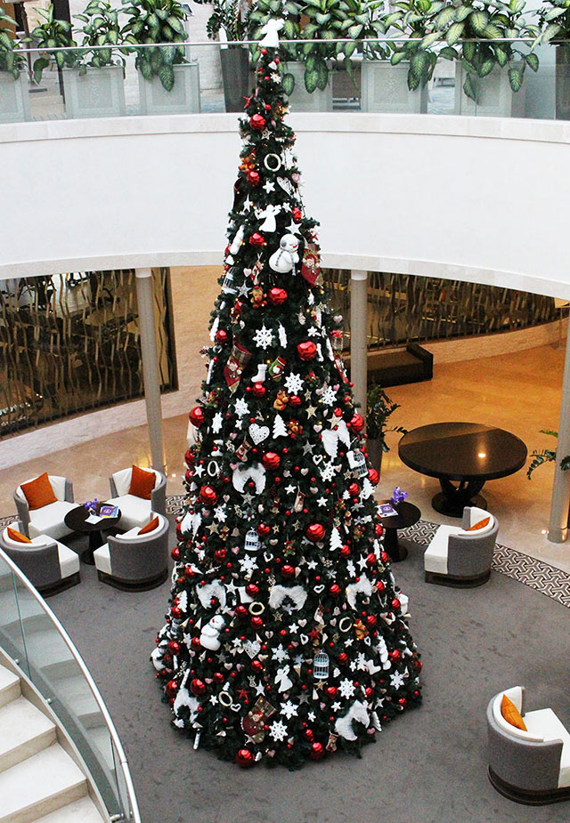 The first story starts at Stejarii Country Club. People there wanted a big, traditional, red and white Christmas tree. It was six meters high and it was a perfect fit for the warm, intimate space. The entire community comes to relax and spend time together at Stejarii, so I wanted to give, through our Christmas tree, that “Welcome home” feeling. It was that kind of tree decorated with red globes, white angels, snowmen and lights, the kind that manages to gather the entire family around it for sharing gifts. If everyone was nice. The naughty ones were forced to fix their mistakes at the superb Shiseido Spa at Stejarii Country Club.