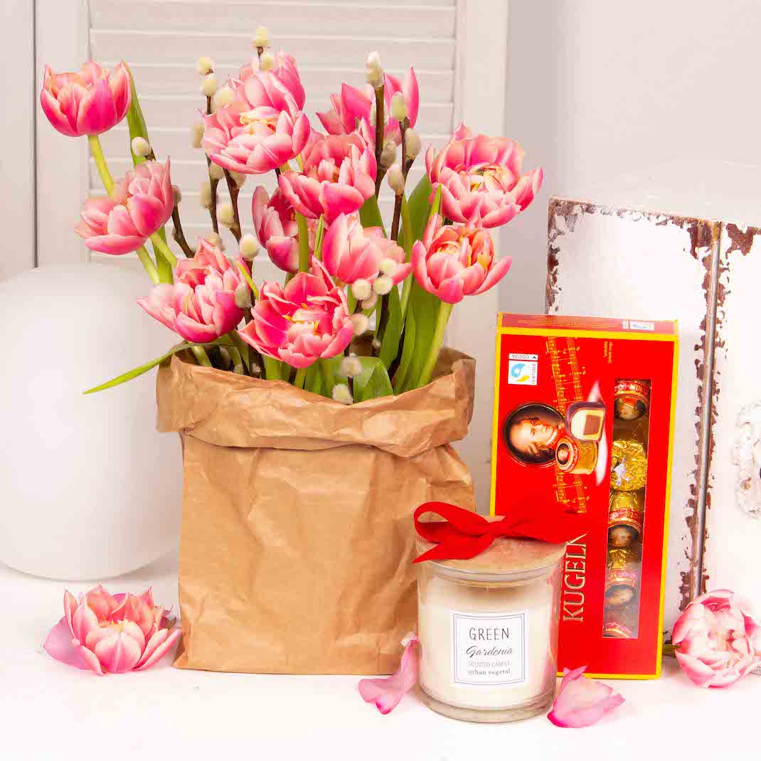 The most special occasions need special gifts. Order this gift with tulips, candle, chocolate pralines with marzipan and turn an ordinary day into a beautiful memory. Designed specifically for women, whether you want to give it to your mother, girlfriend, colleagues, or other women you know, they will surely appreciate that you’ve thought of them.