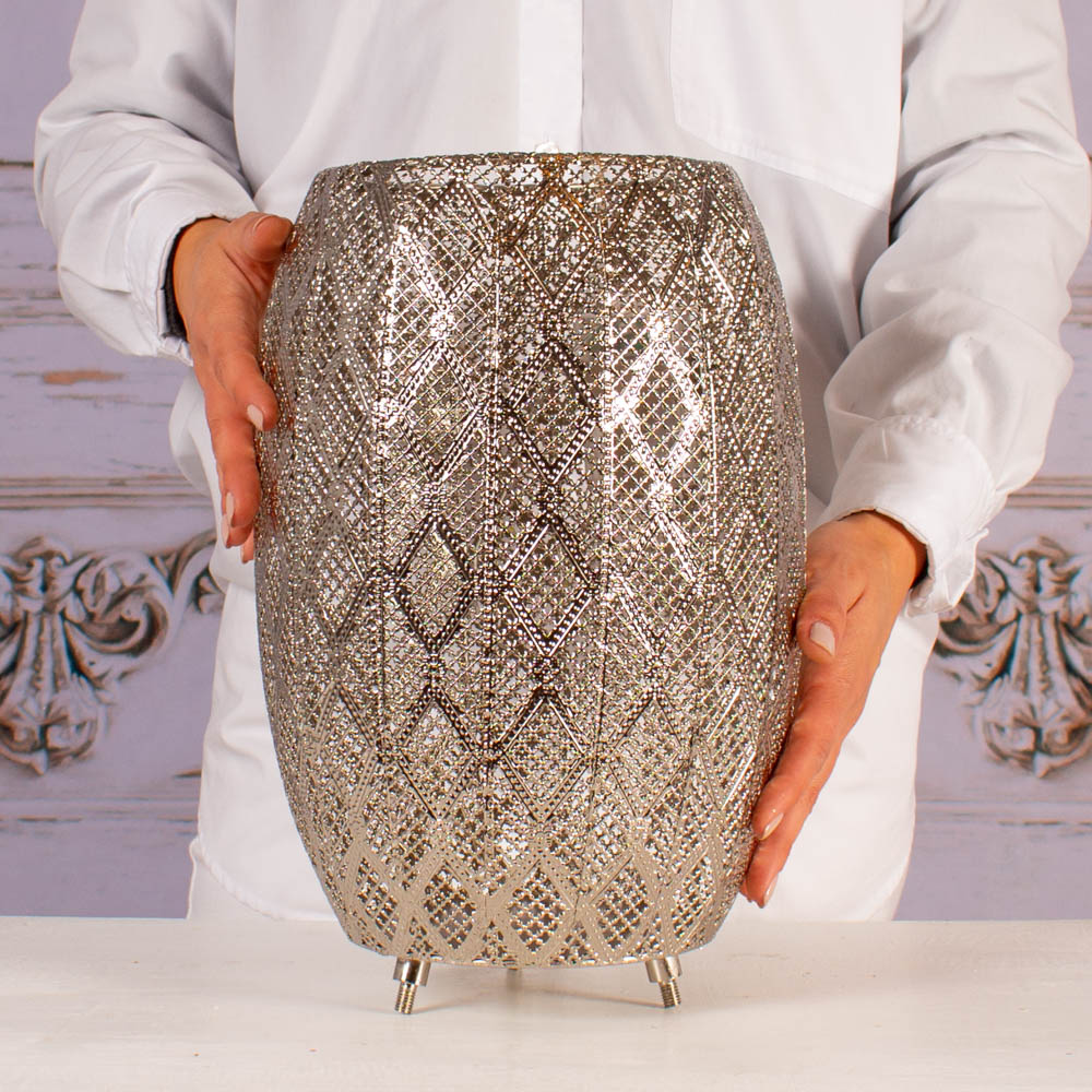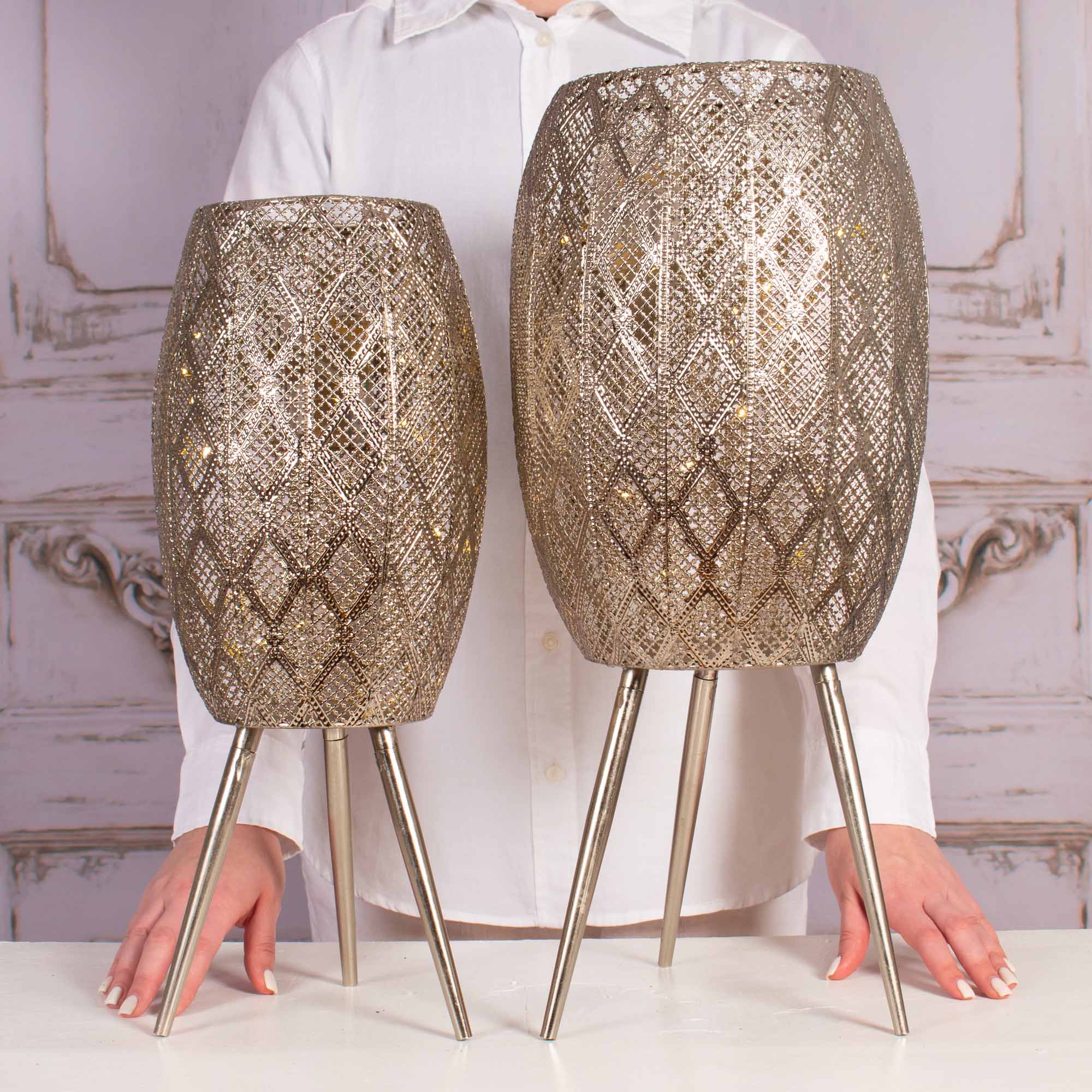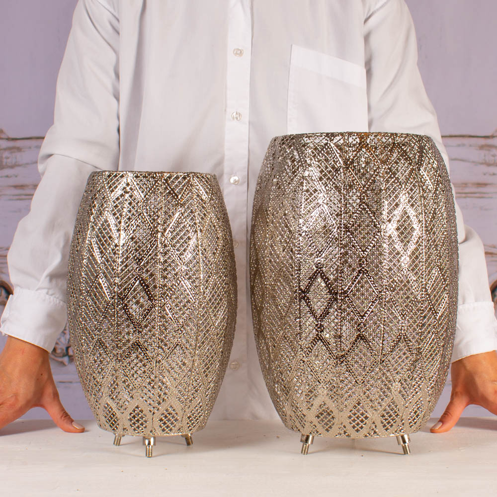 Contine: Felinar din metal cu picior si LED, argintiu, doua dimensiuni, pretul este per bucata