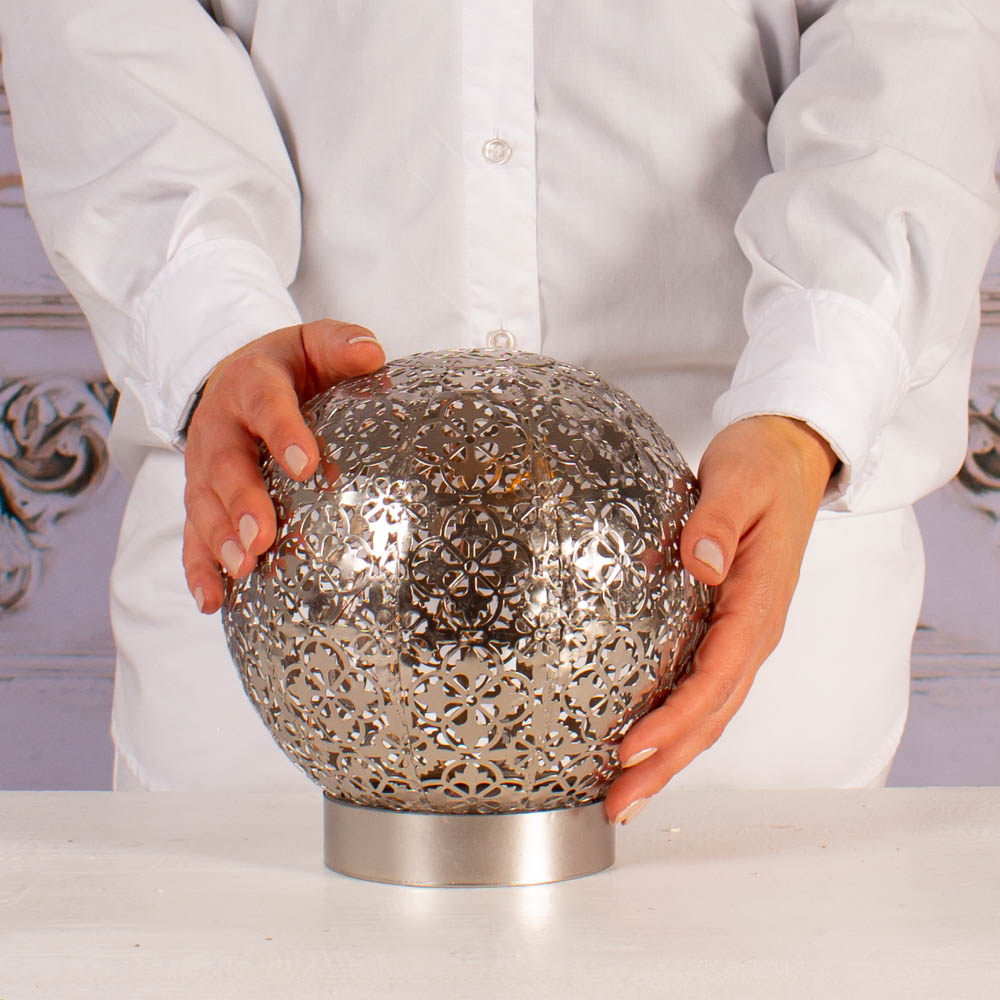 Contine: Felinar in forma de glob cu LED din metal 18 x 19 cm argintiu