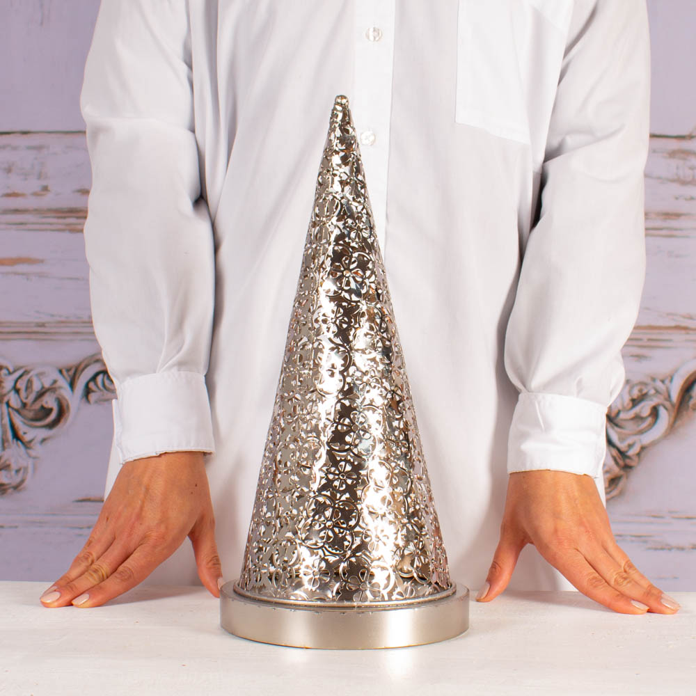 Contine : Felinar in forma de con cu LED din metal, argintiu
