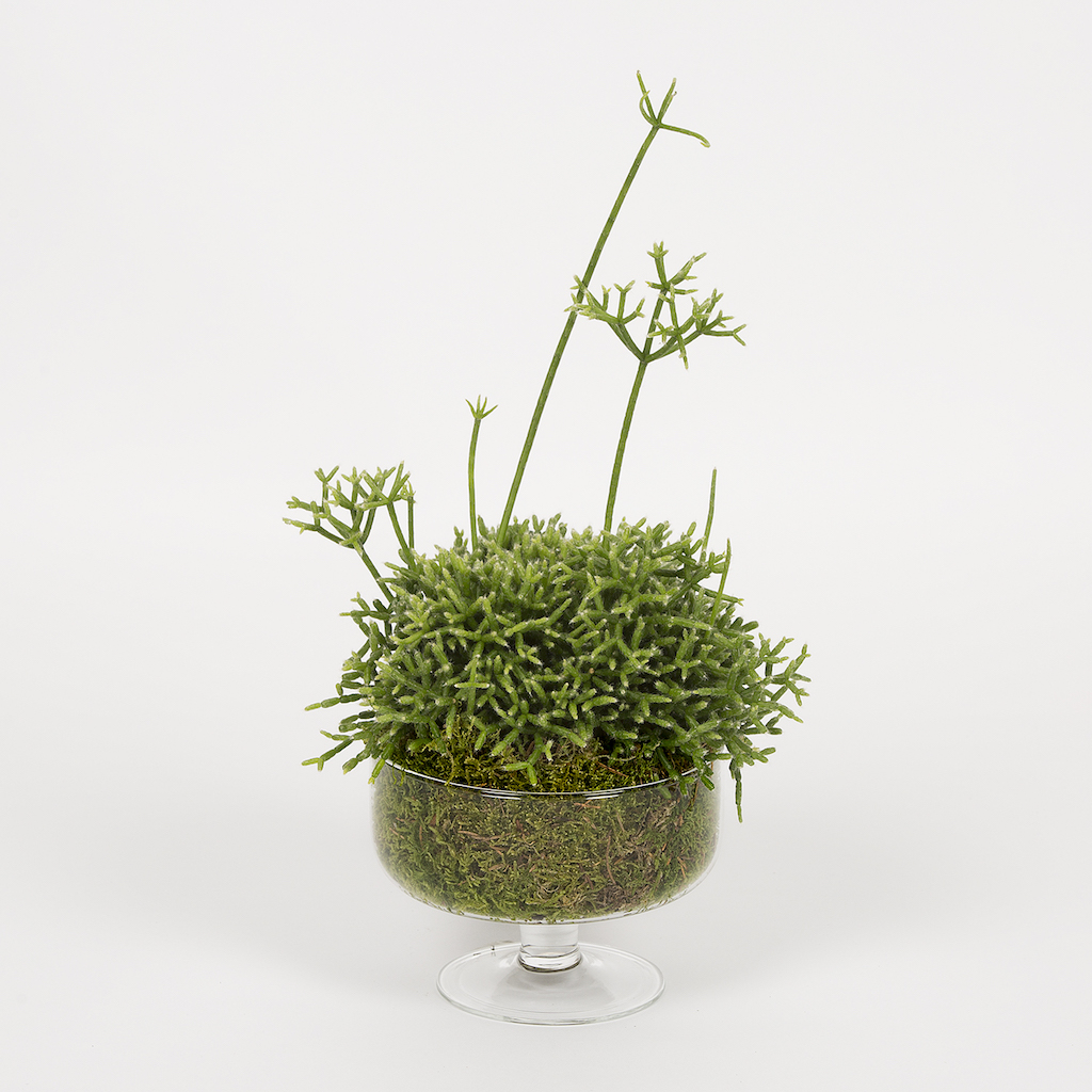 Am pregatit acest terariu de sticla in forma de fructiera cu suculenta si muschi verde pentru momentele frumoase din viata ta, pe care vrei sa le sarbatoresti printr-un gest de rasfat fata de tine. Foarte usor de intretinut, aranjamentul e gata pregatit. Asteptam un semn de la tine si pornim sa-ti livram un aranjament desprins din natura.
