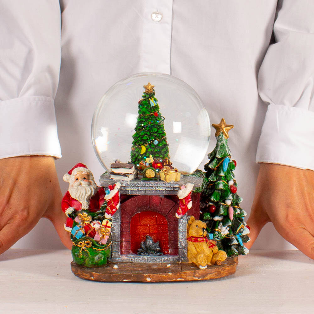 Contine : Glob de zapada muzical cu semineu iluminat 20 x 17,8 x 19,5 cm