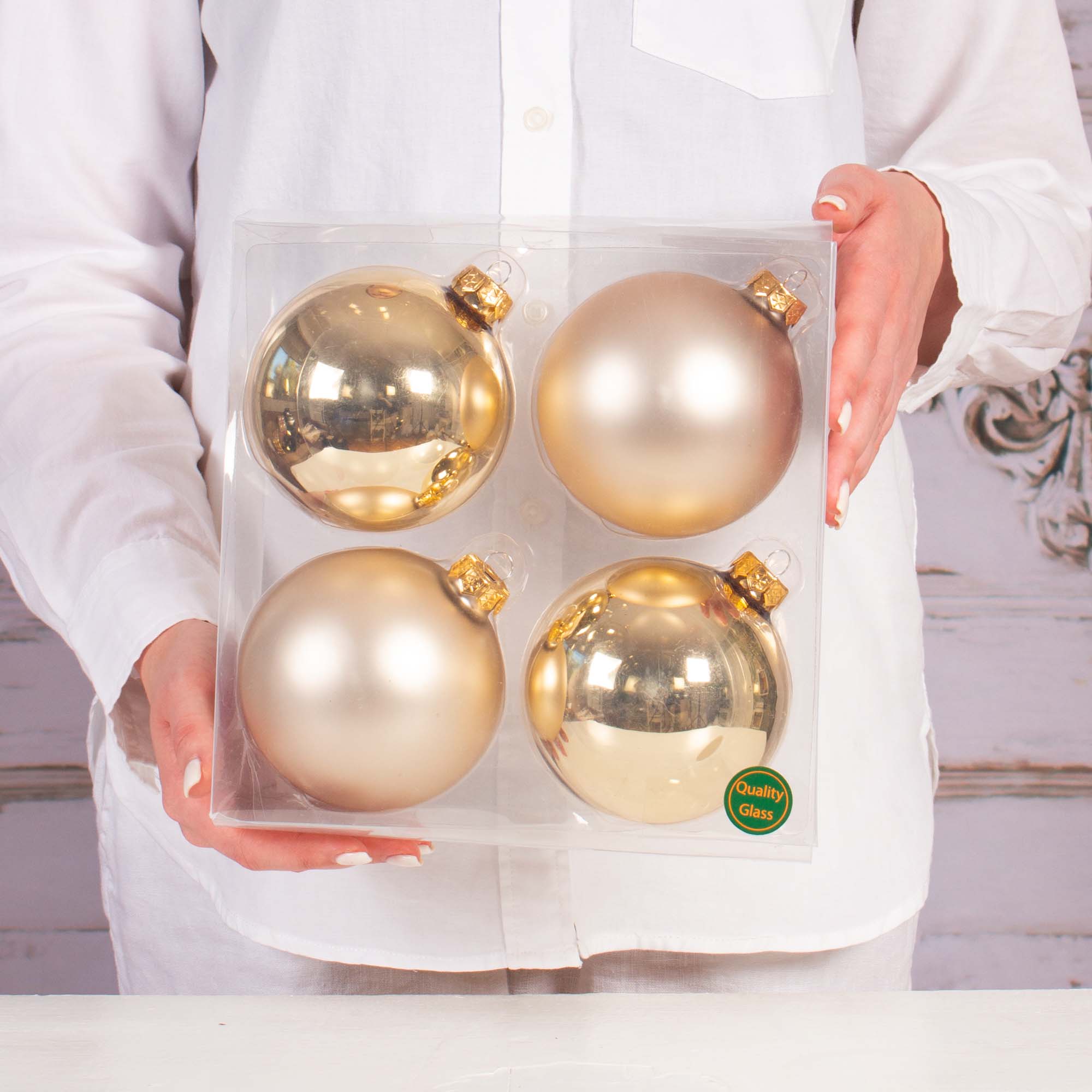 Contine: Set de 4 globuri de sticla sampanie(10 cm)