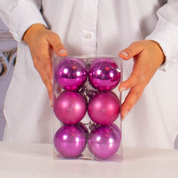 Contine: Set de 72 globuri de sticla roz lucios-mat 3 cm
